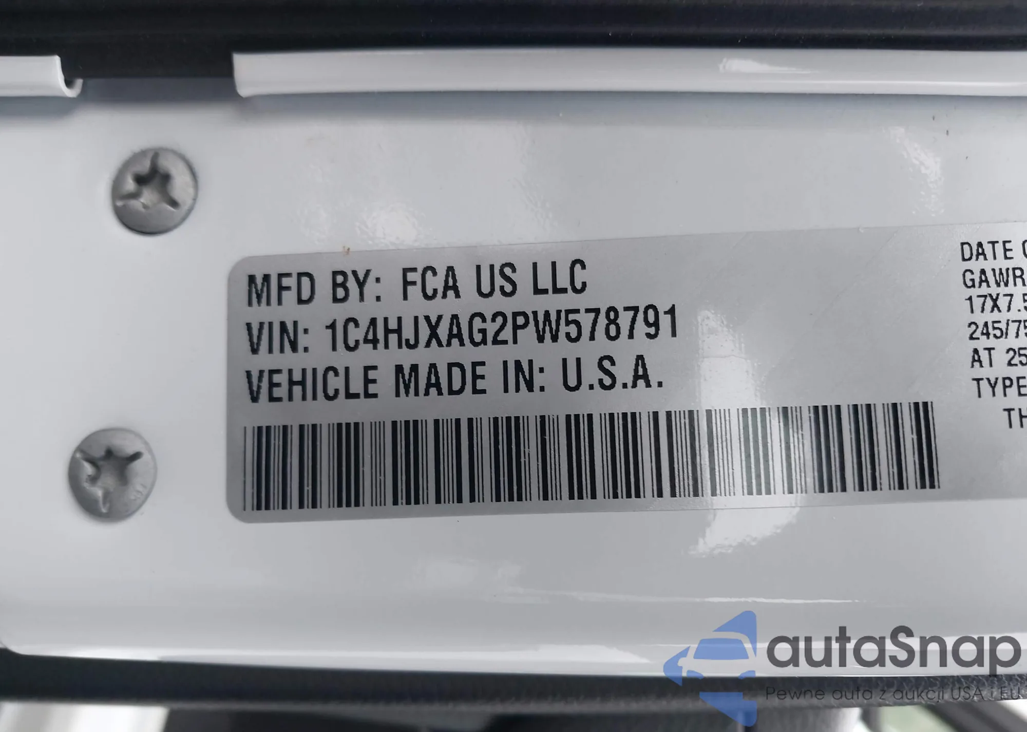 VIN: 1C4HJXAG2PW578791