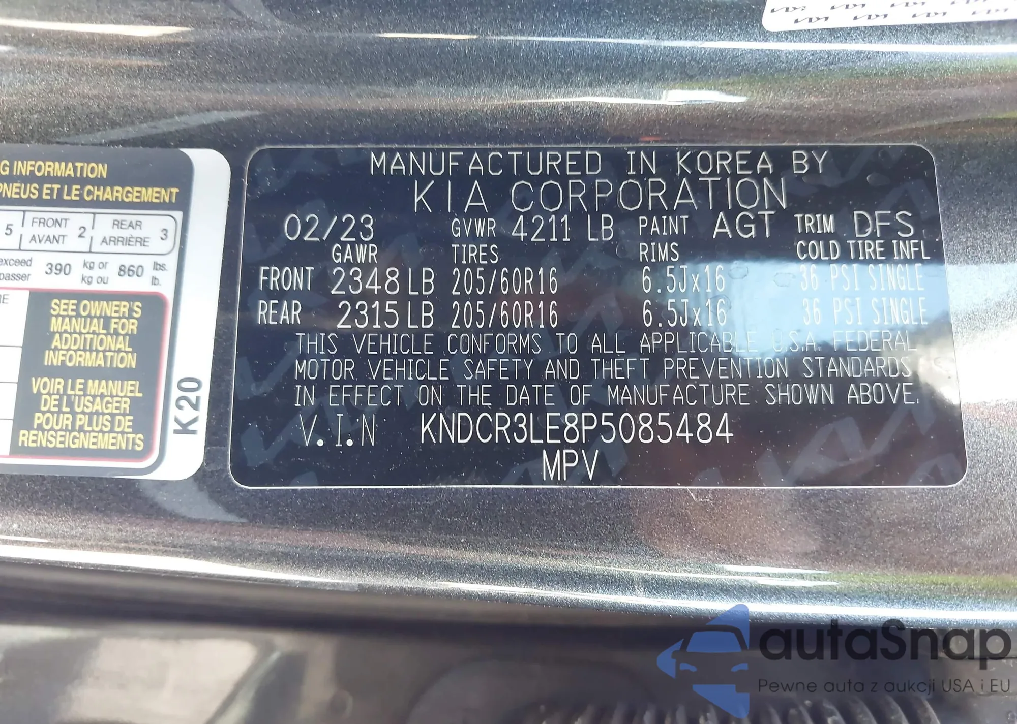 VIN: KNDCR3LE8P5085484