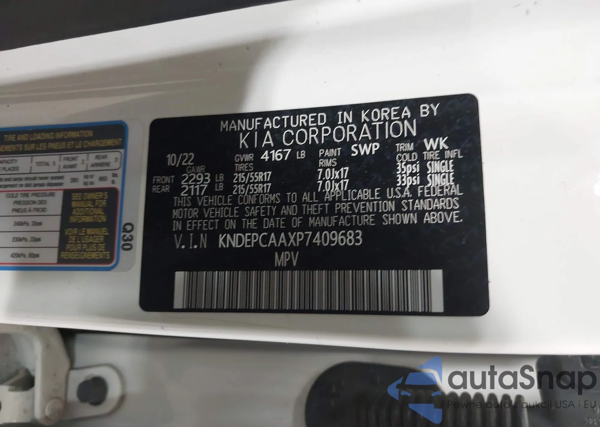 VIN: KNDEPCAAXP7409683