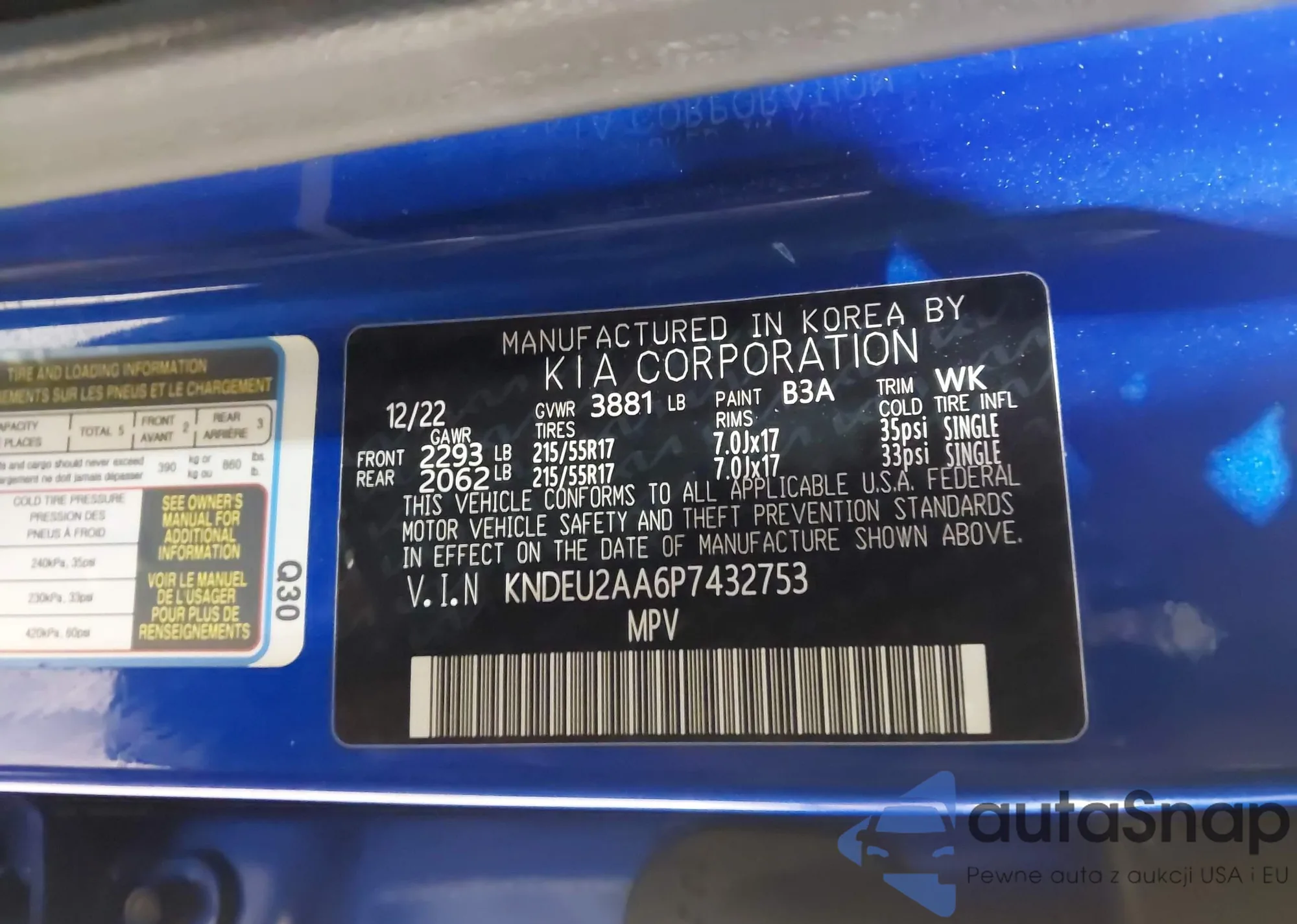 • VIN: KNDEU2AA6P7432753
