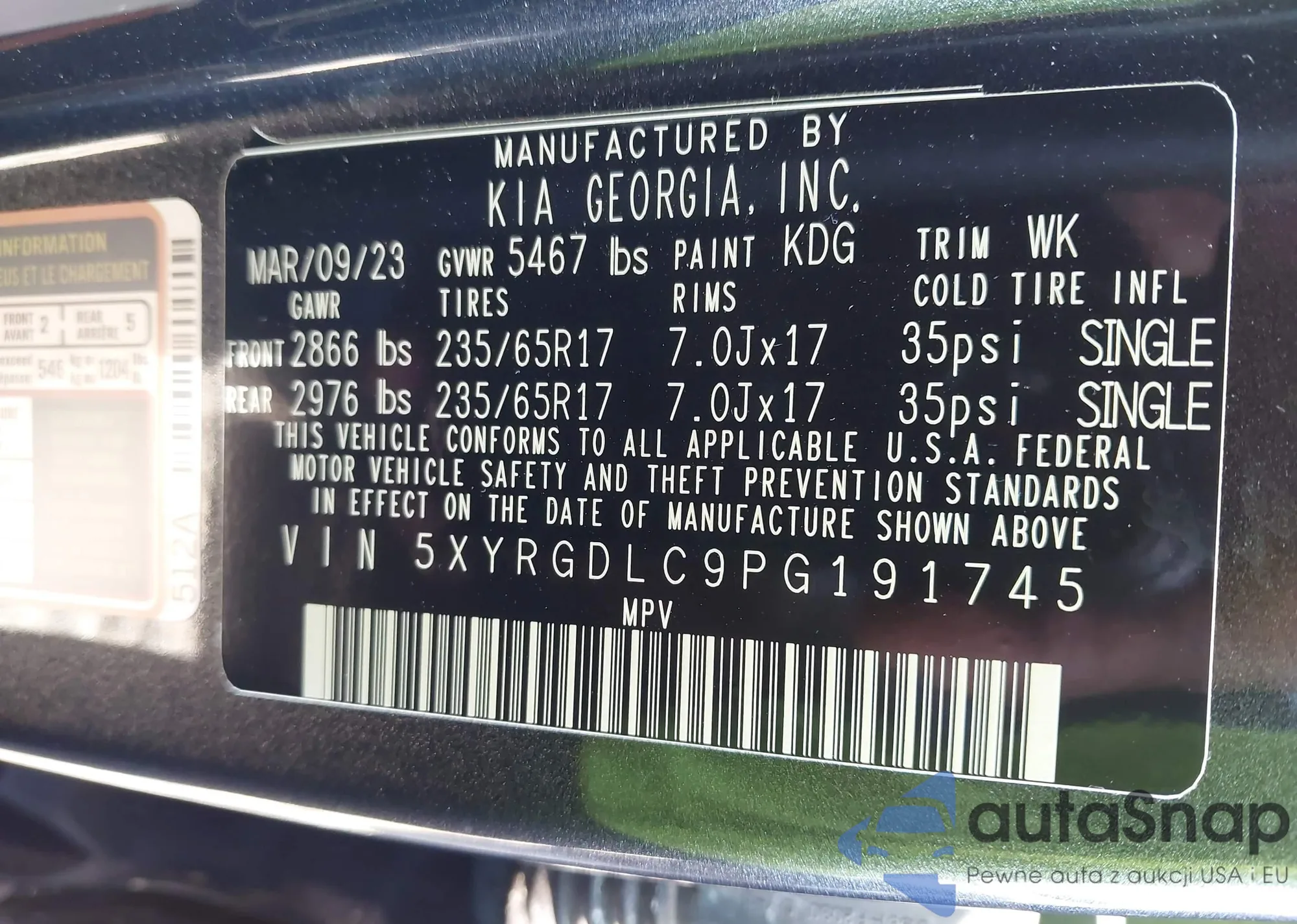 • VIN: 5XYRGDLC9PG191745