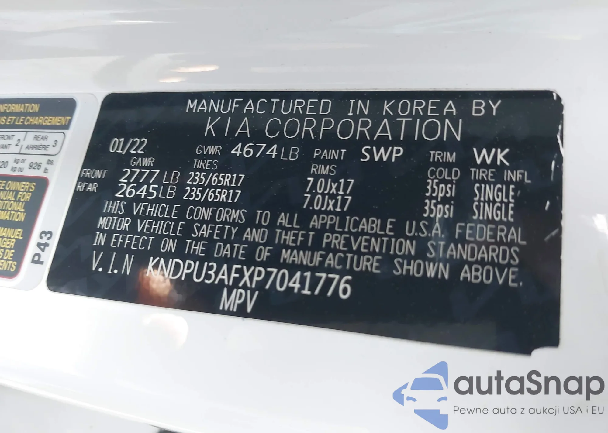 VIN: KNDPU3AFXP7041776