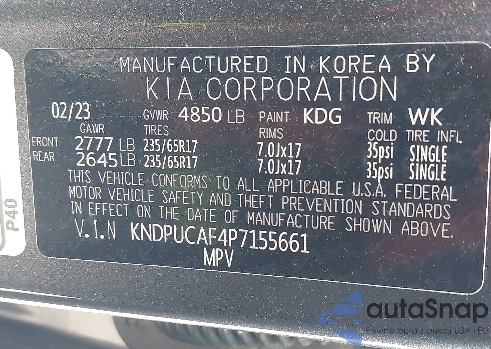 • VIN: KNDPUCAF4P7155661