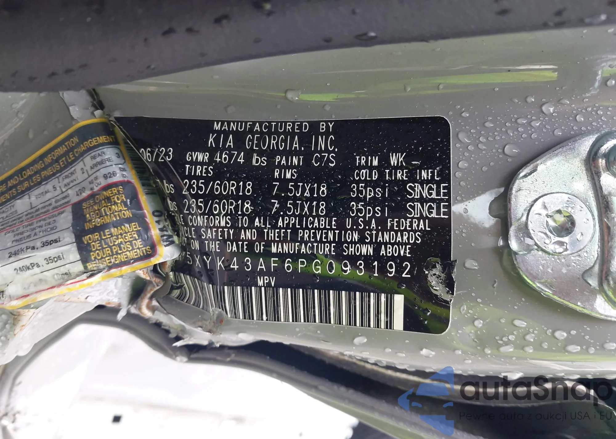 Автомобиль Kia Sportage 2023 (VIN 5XYK43AF6PG093192) ранее не участвовал в торгах. Документы чистые, пробег соответствует или ниже среднего по рынку. Продаётся страховой компанией — рекомендуем покупку. Доставка в порт займет около 6–8 недель.