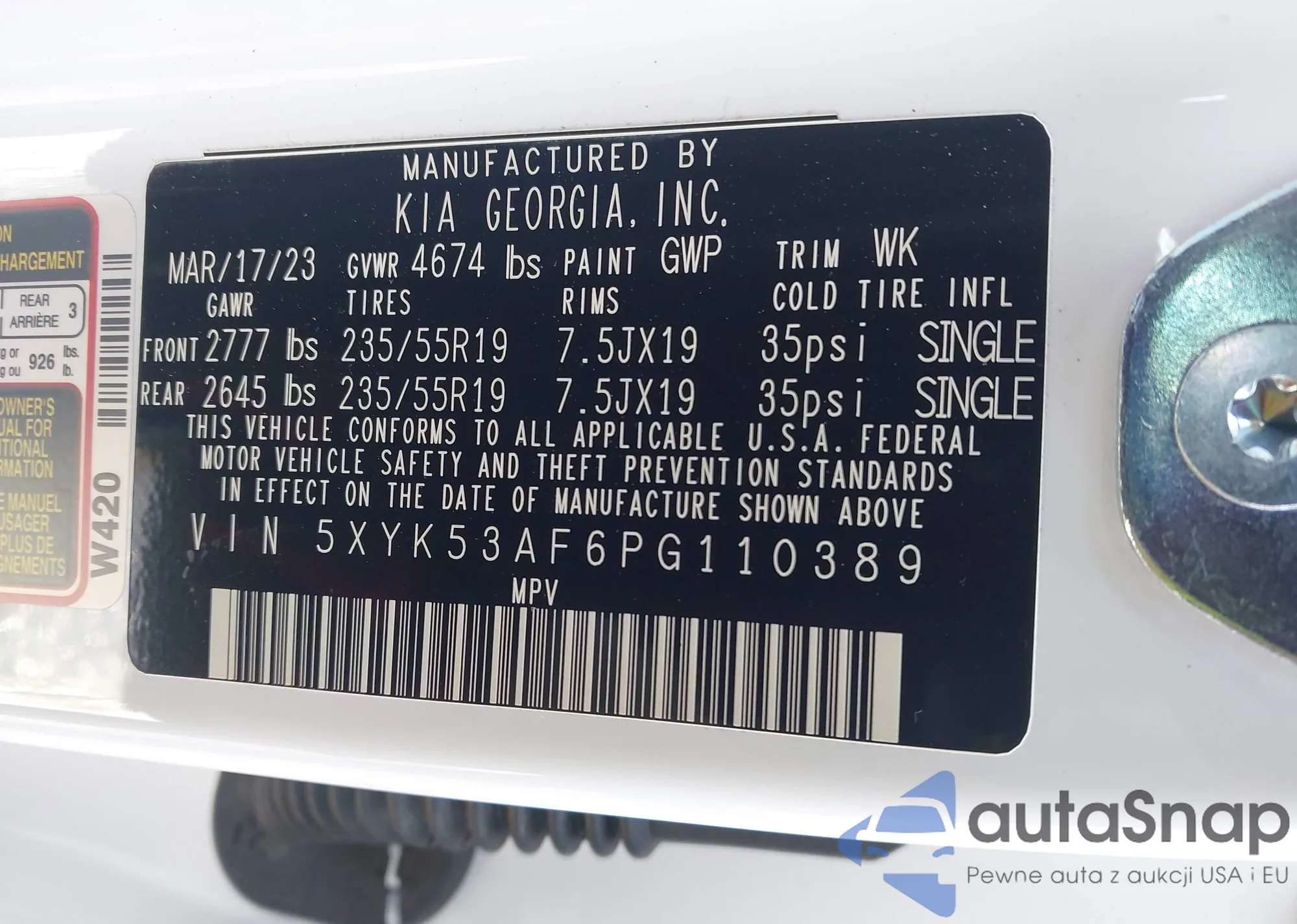 VIN: 5XYK53AF6PG110389