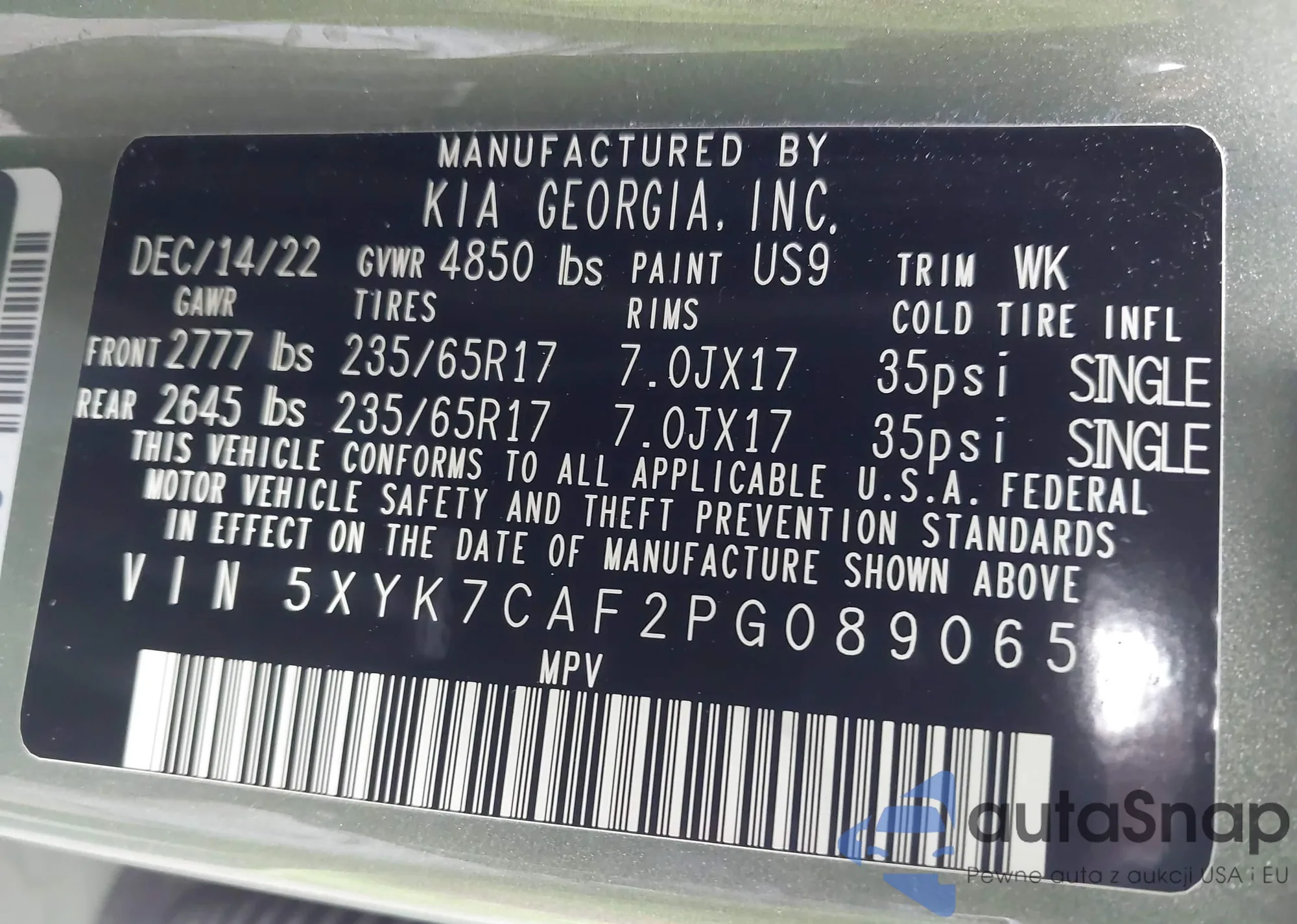VIN: 5XYK7CAF2PG089065