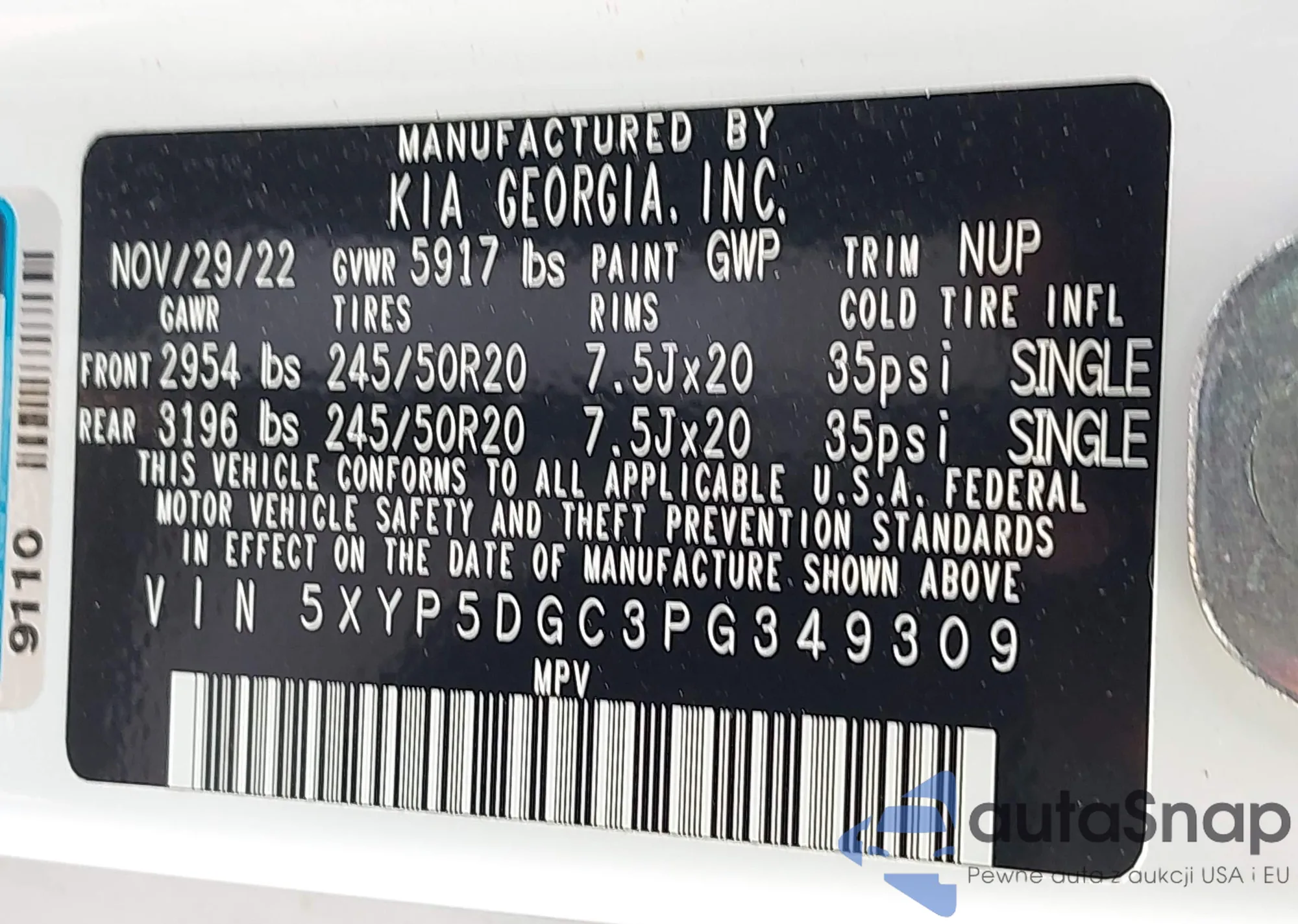VIN: 5XYP5DGC3PG349309