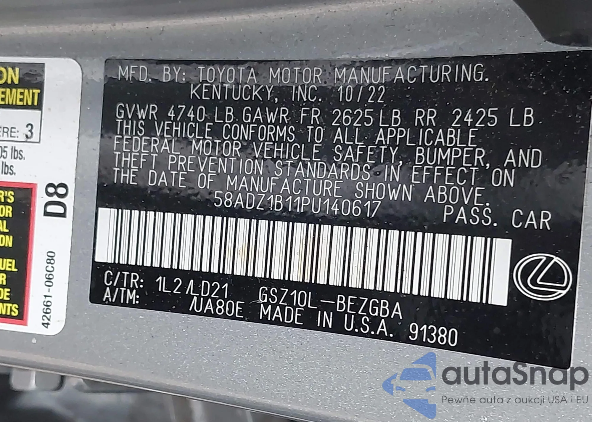 Автомобиль Lexus ES 2023 (VIN 58ADZ1B11PU140617) ранее не участвовал в торгах. Документы чистые, пробег соответствует или ниже среднего по рынку. Продаётся страховой компанией — рекомендуем покупку. Доставка в порт займет около 6–8 недель.