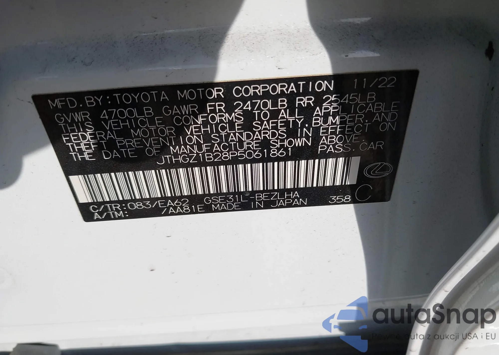 Автомобиль Lexus IS 2023 (VIN JTHGZ1B28P5061861) ранее не участвовал в торгах. Документы чистые, пробег соответствует или ниже среднего по рынку. Продаётся страховой компанией — рекомендуем покупку. Доставка в порт займет около 6–8 недель.