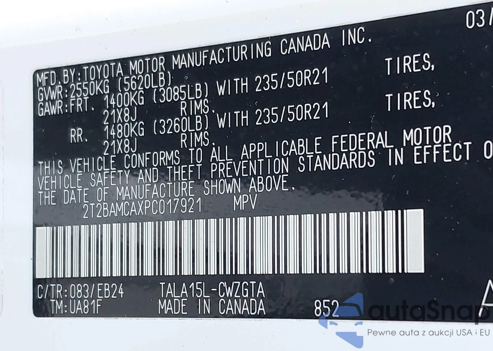 VIN: 2T2BAMCAXPC017921