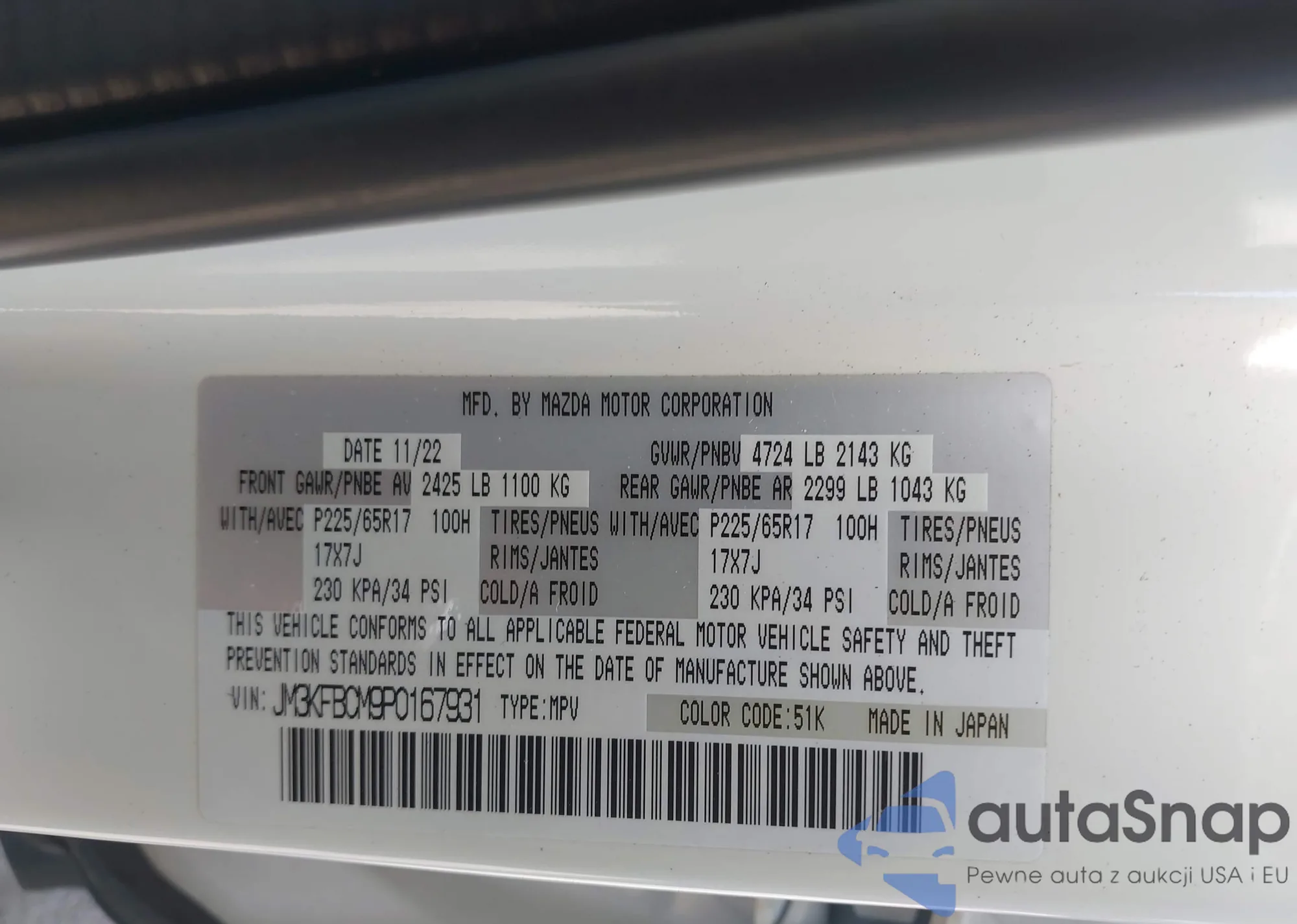 VIN: JM3KFBCM9P0167931