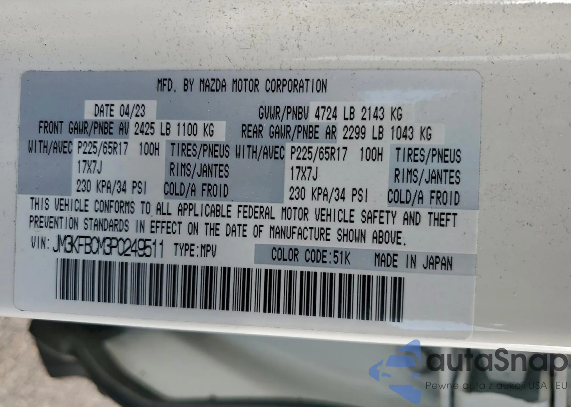 VIN: JM3KFBCM3P0249511