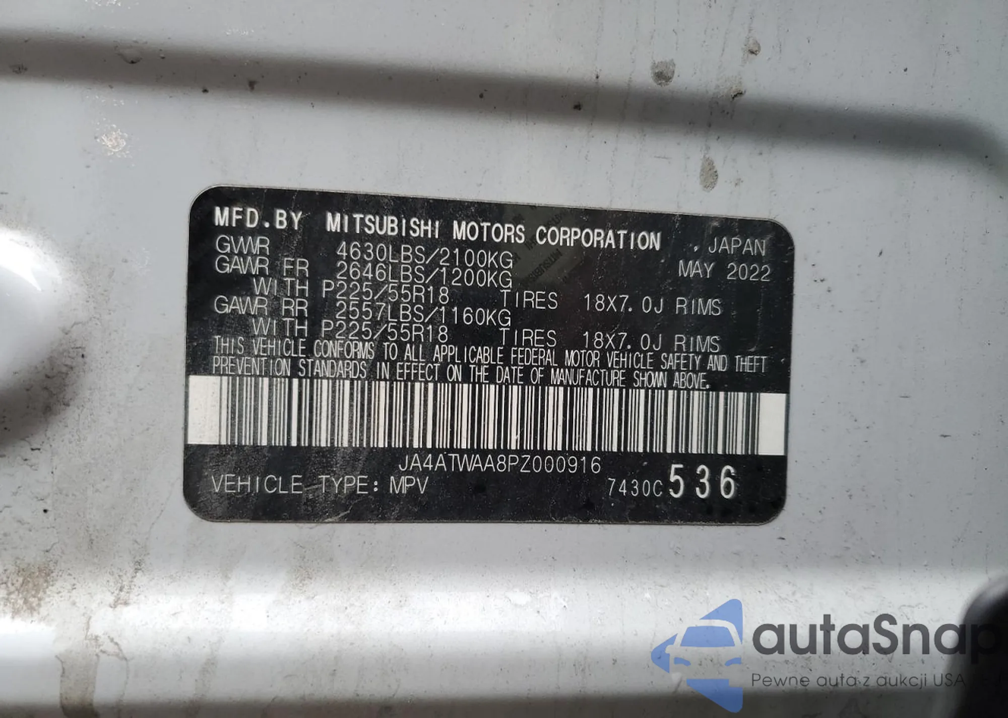 Автомобиль Mitsubishi Eclipse 2023 (VIN JA4ATWAA8PZ000916) ранее не участвовал в торгах. Документы чистые, пробег соответствует или ниже среднего по рынку. Продаётся страховой компанией — рекомендуем покупку. Доставка в порт займет около 6–8 недель.