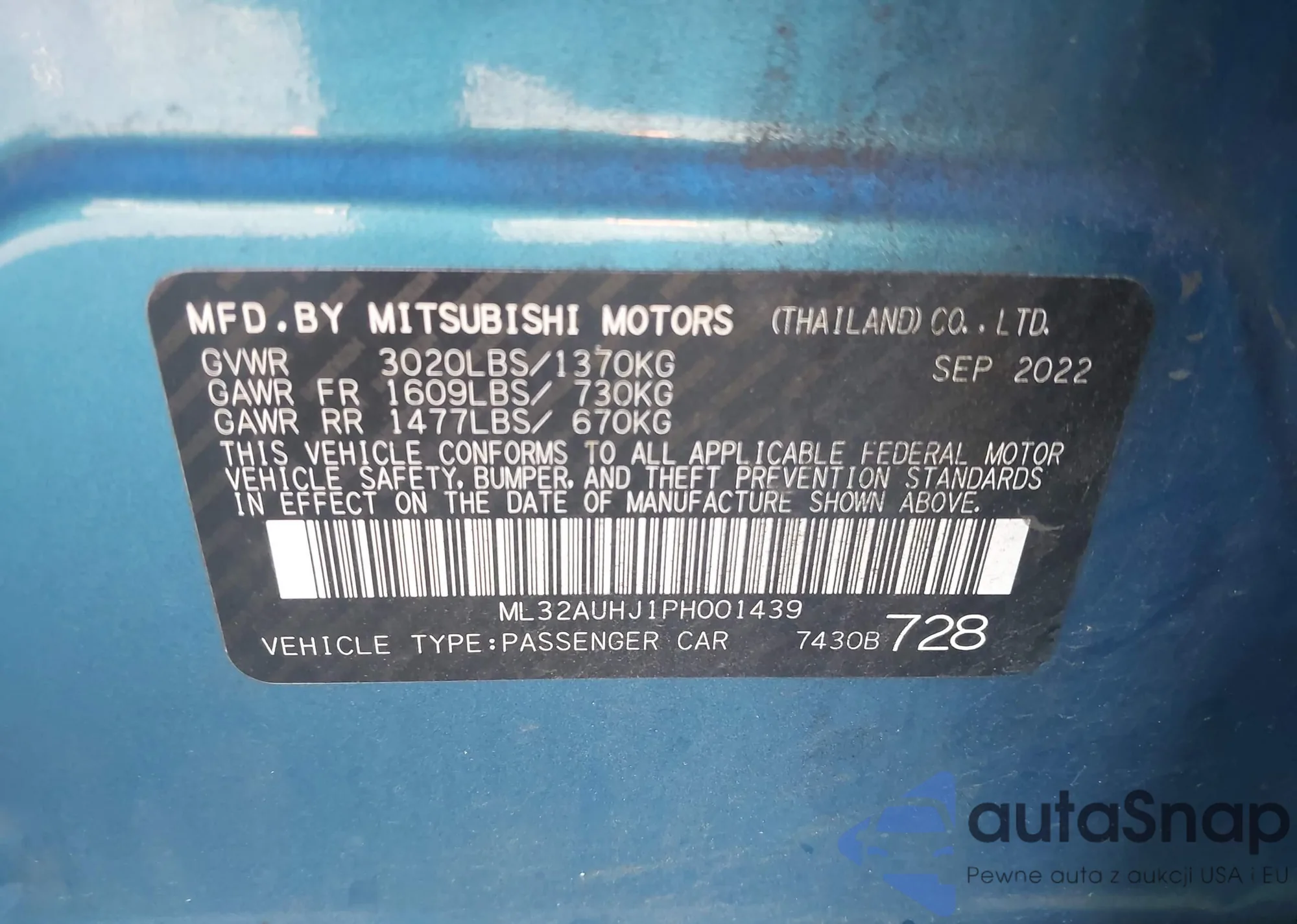 Автомобиль Mitsubishi Mirage 2023 (VIN ML32AUHJ1PH001439) ранее не участвовал в торгах. Документы чистые, пробег соответствует или ниже среднего по рынку. Продаётся страховой компанией — рекомендуем покупку. Доставка в порт займет около 6–8 недель.