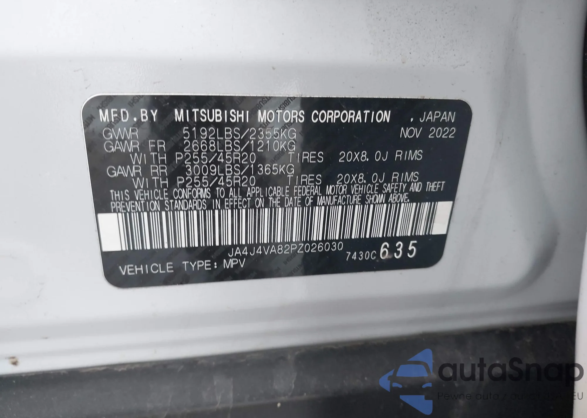 Автомобиль Mitsubishi Outlander 2023 (VIN JA4J4VA82PZ026030) ранее не участвовал в торгах. Документы чистые, пробег соответствует или ниже среднего по рынку. Продаётся страховой компанией — рекомендуем покупку. Доставка в порт займет около 6–8 недель.