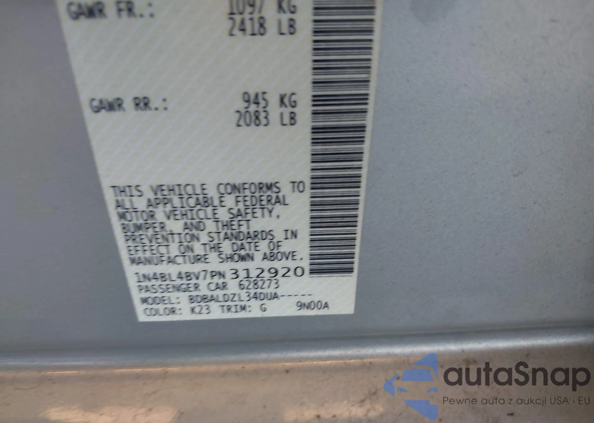 VIN: 1N4BL4BV7PN312920