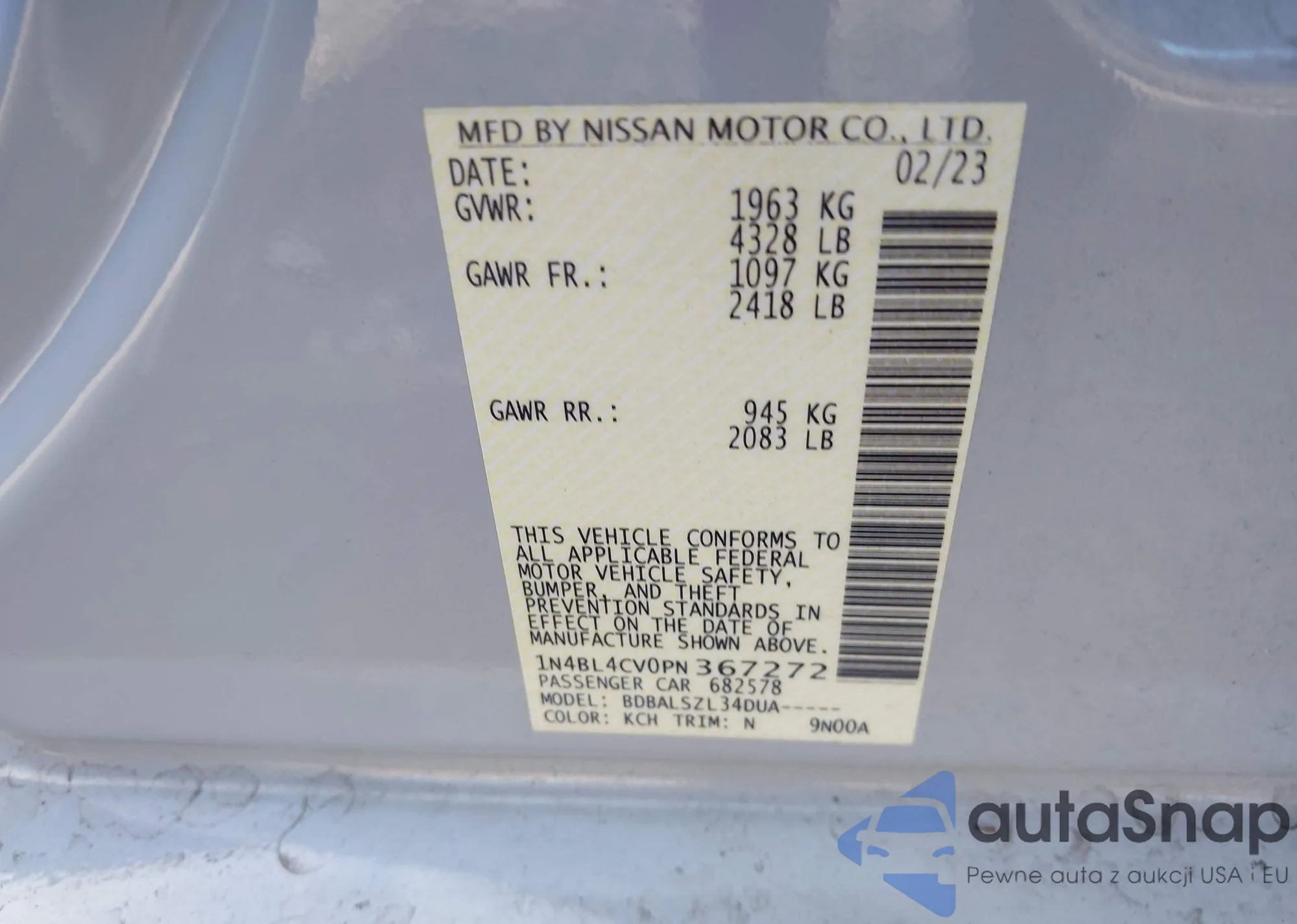 VIN: 1N4BL4CV0PN367272
