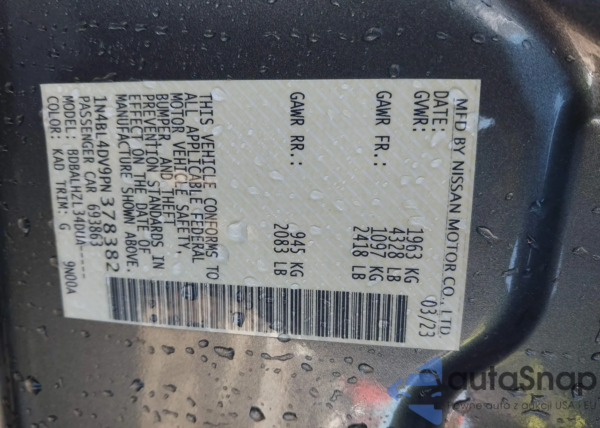 Автомобиль Nissan Altima 2023 (VIN 1N4BL4DV9PN378382) ранее не участвовал в торгах. Документы чистые, пробег соответствует или ниже среднего по рынку. Продаётся страховой компанией — рекомендуем покупку. Доставка в порт займет около 6–8 недель.