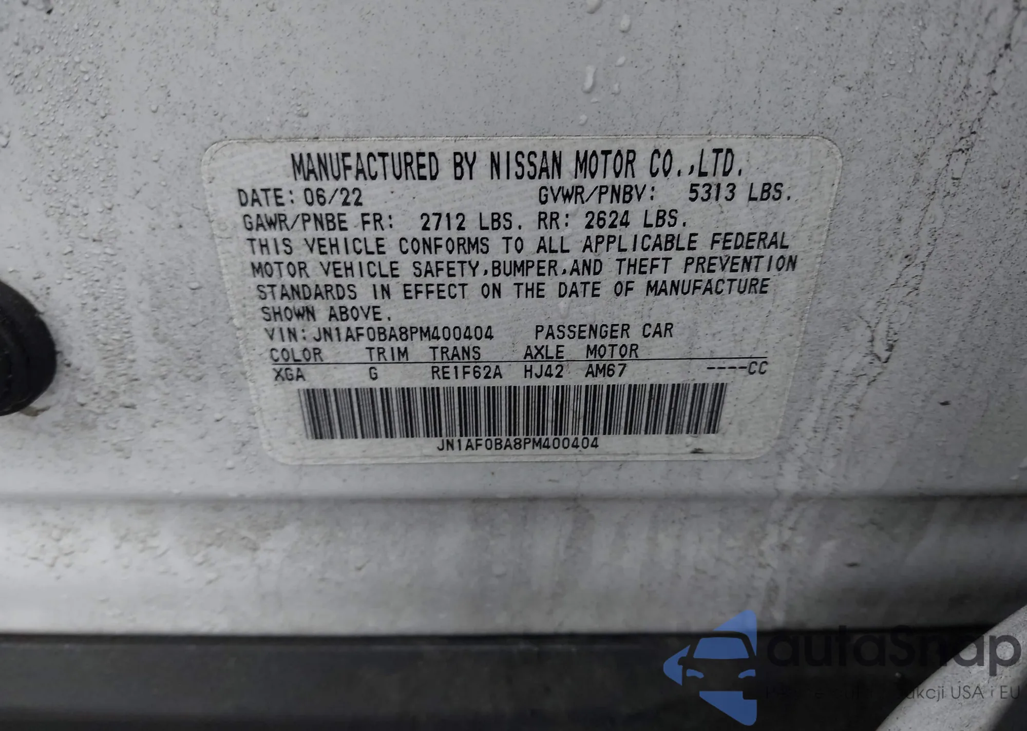 Автомобиль Nissan Ariya 2023 (VIN JN1AF0BA8PM400404) ранее не участвовал в торгах. Документы чистые, пробег соответствует или ниже среднего по рынку. Продаётся страховой компанией — рекомендуем покупку. Доставка в порт займет около 6–8 недель.