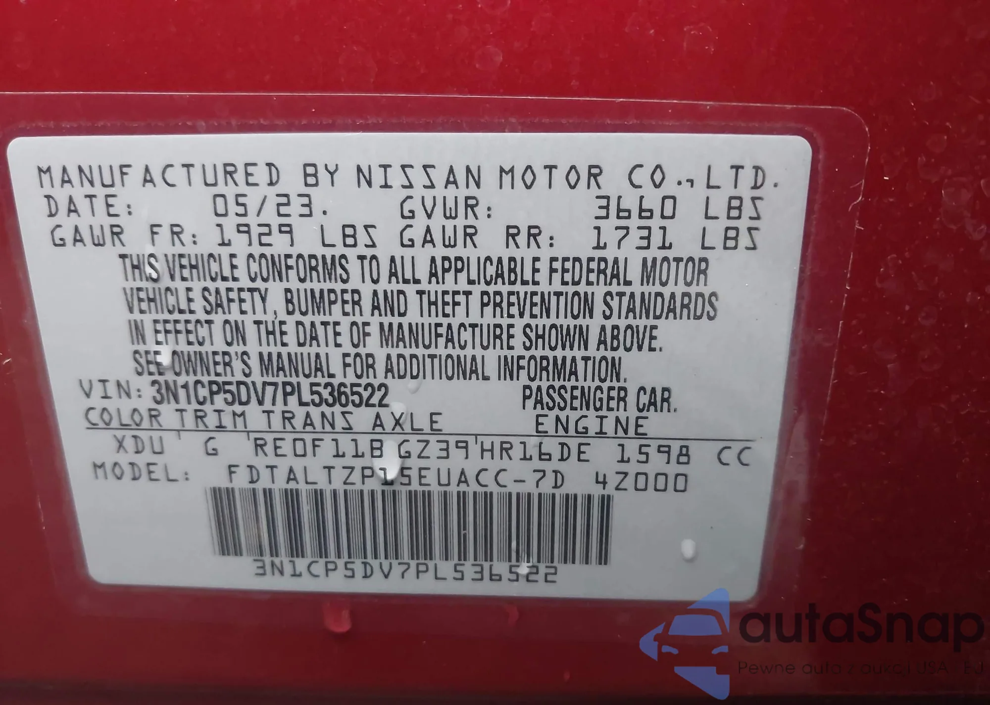 VIN: 3N1CP5DV7PL536522