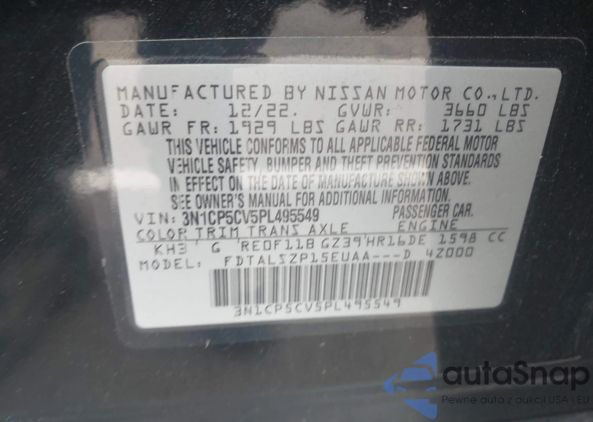 • VIN: 3N1CP5CV5PL495549