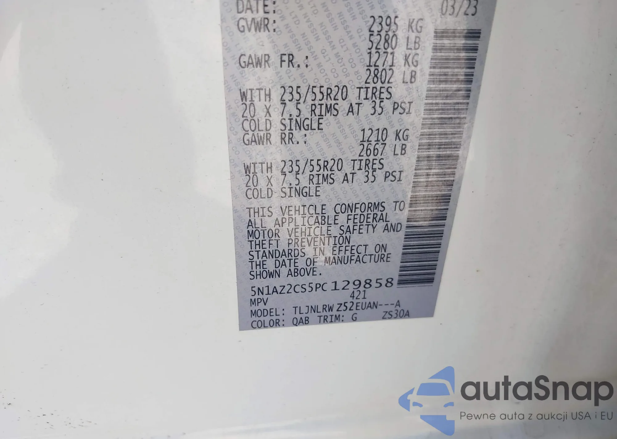 VIN: 5N1AZ2CS5PC129858