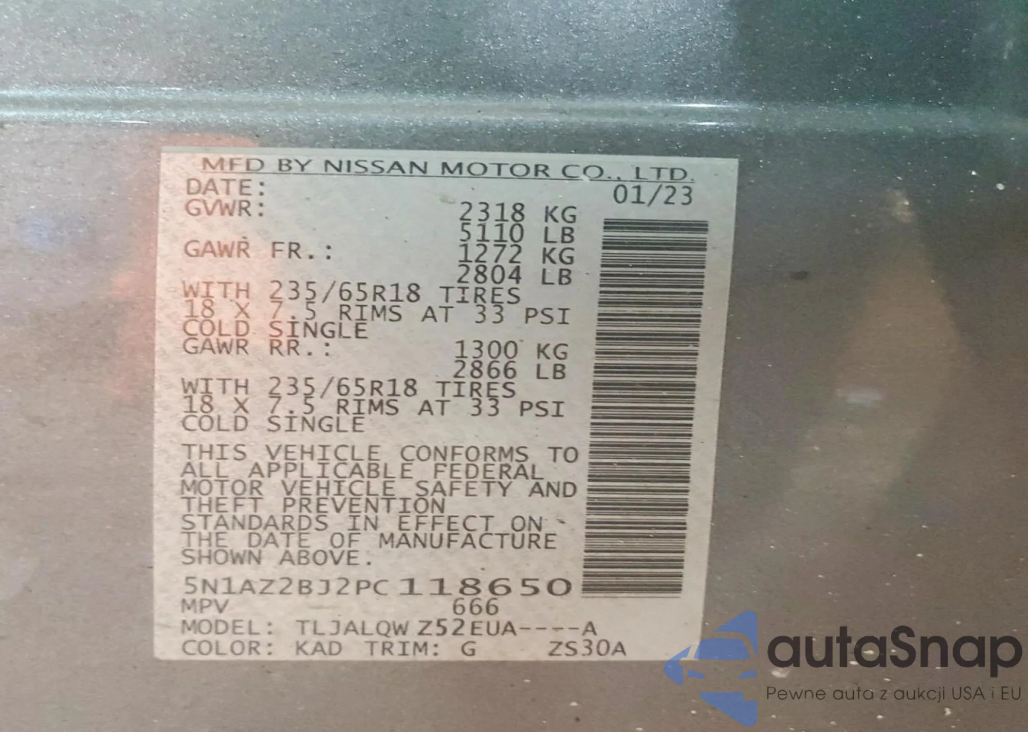 VIN: 5N1AZ2BJ2PC118650