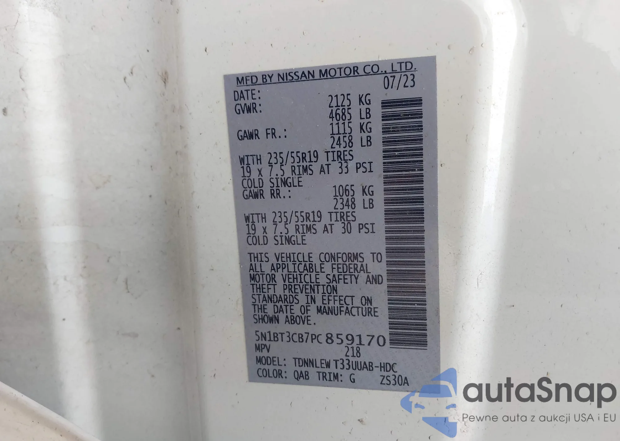 Автомобиль Nissan Rogue 2023 (VIN 5N1BT3CB7PC859170) ранее не участвовал в торгах. Документы чистые, пробег соответствует или ниже среднего по рынку. Продаётся страховой компанией — рекомендуем покупку. Доставка в порт займет около 6–8 недель.
