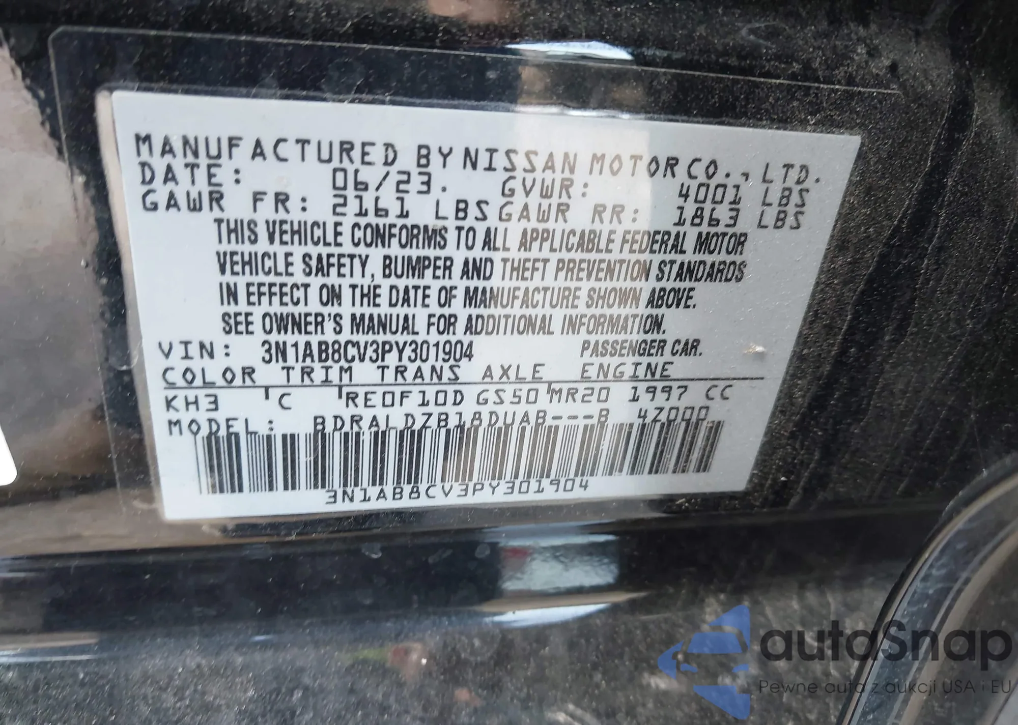 VIN: 3N1AB8CV3PY301904