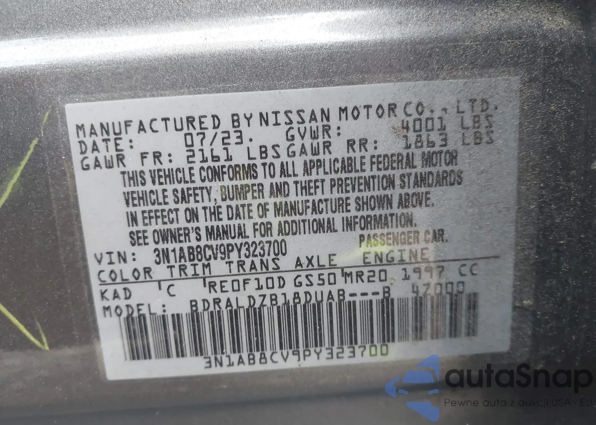 VIN: 3N1AB8CV9PY323700