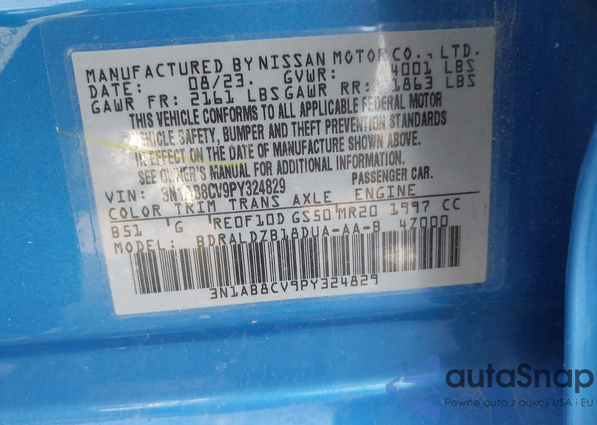 VIN: 3N1AB8CV9PY324829