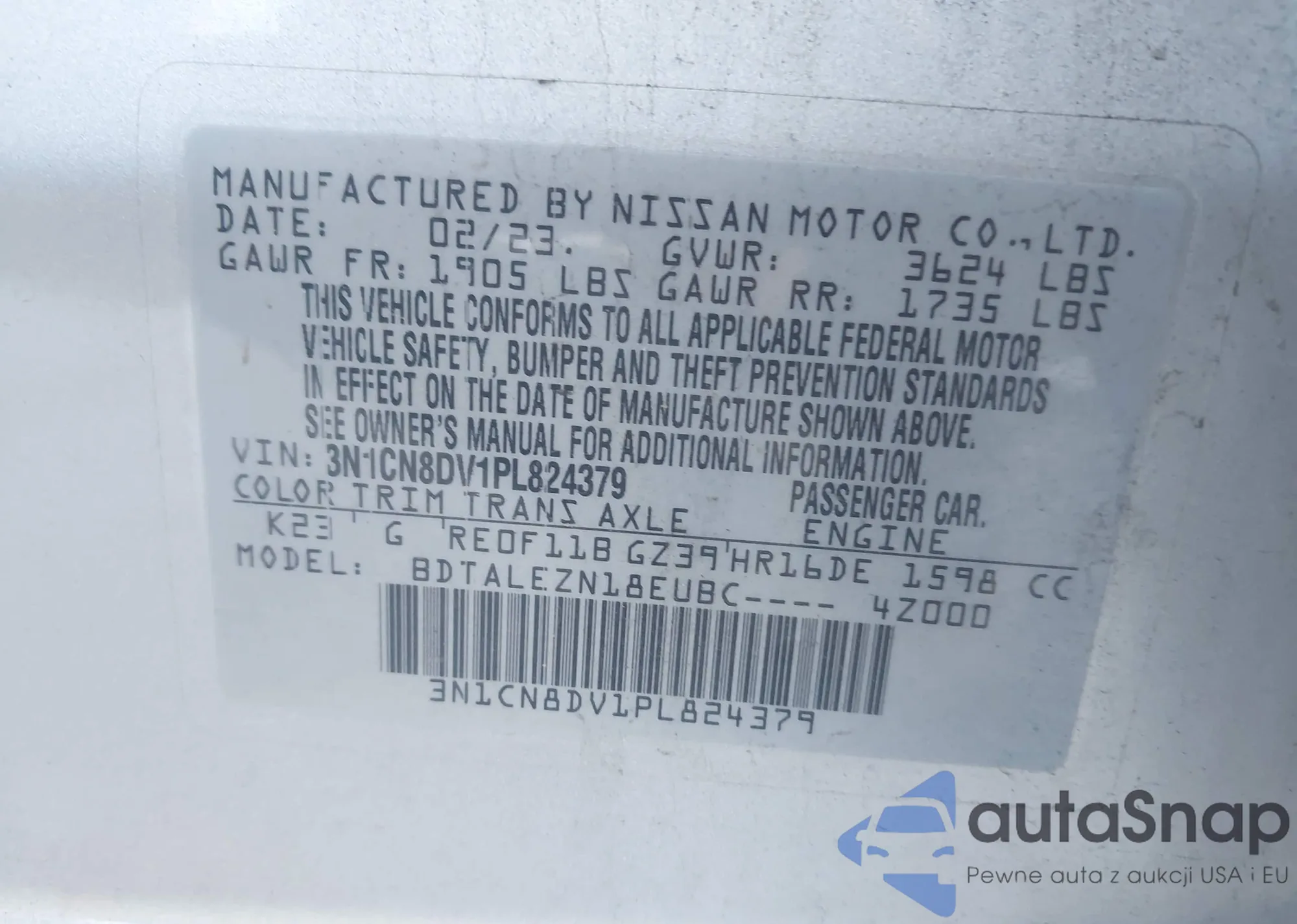 VIN: 3N1CN8DV1PL824379