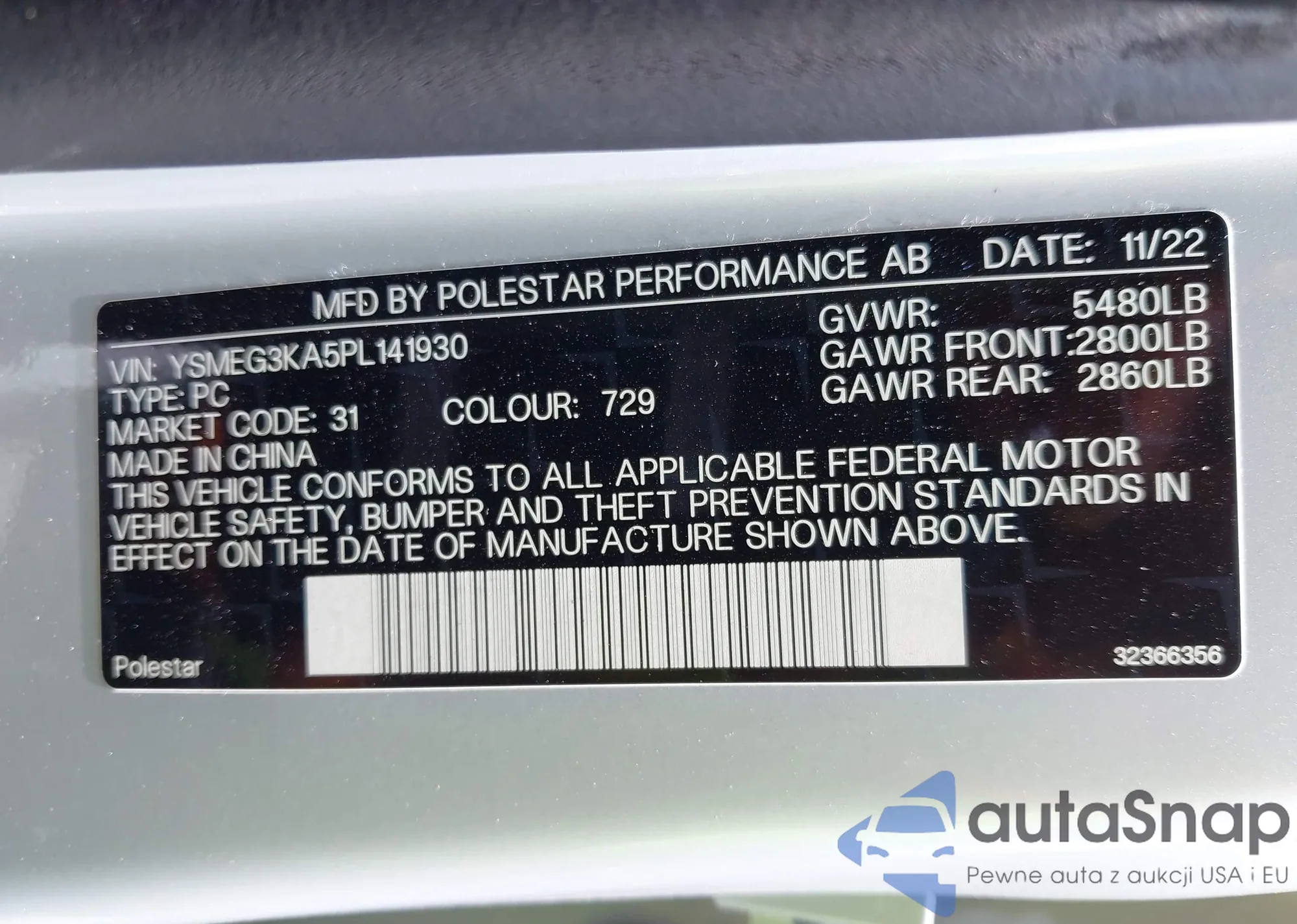• VIN: YSMEG3KA5PL141930
