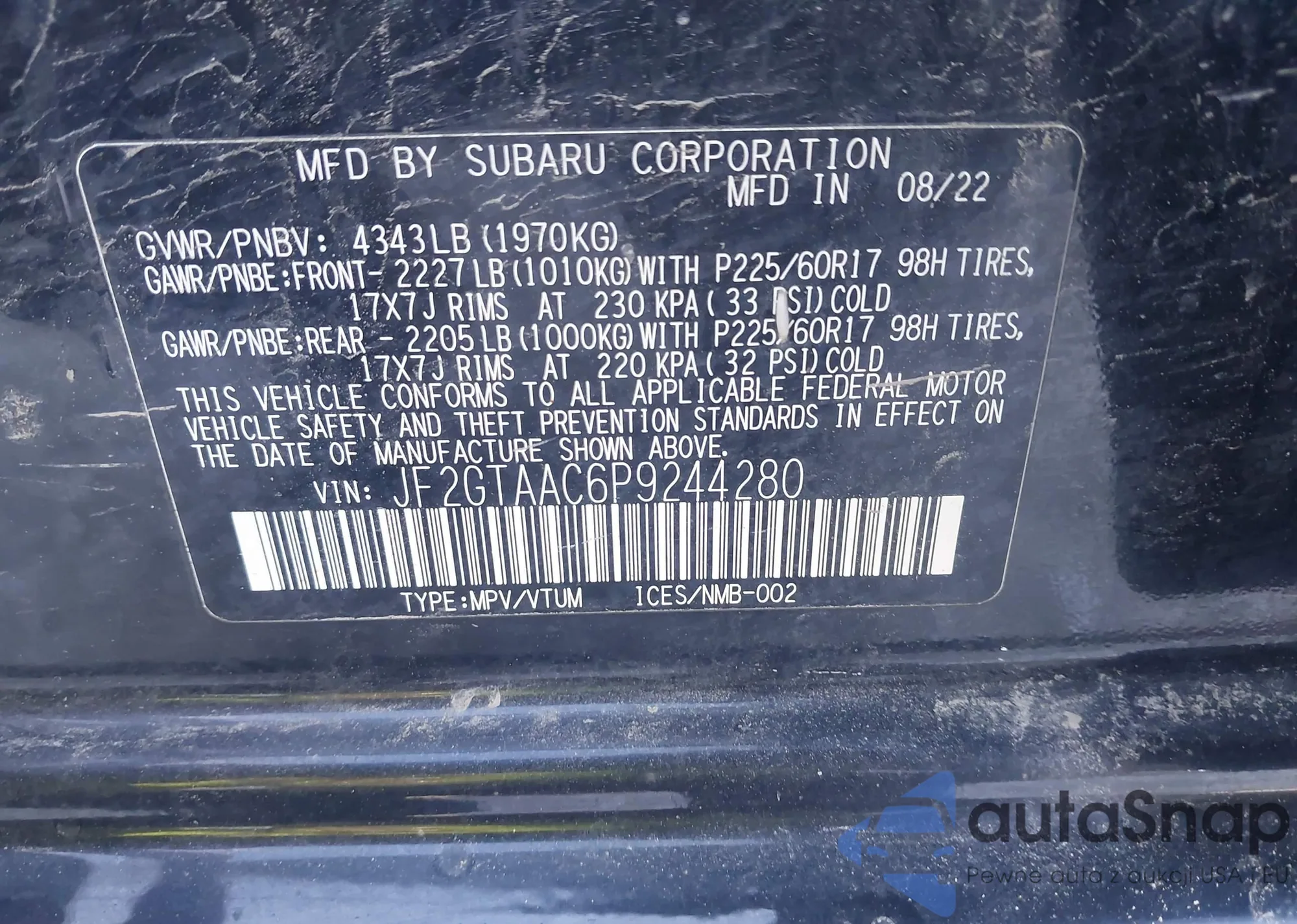 VIN: JF2GTAAC6P9244280