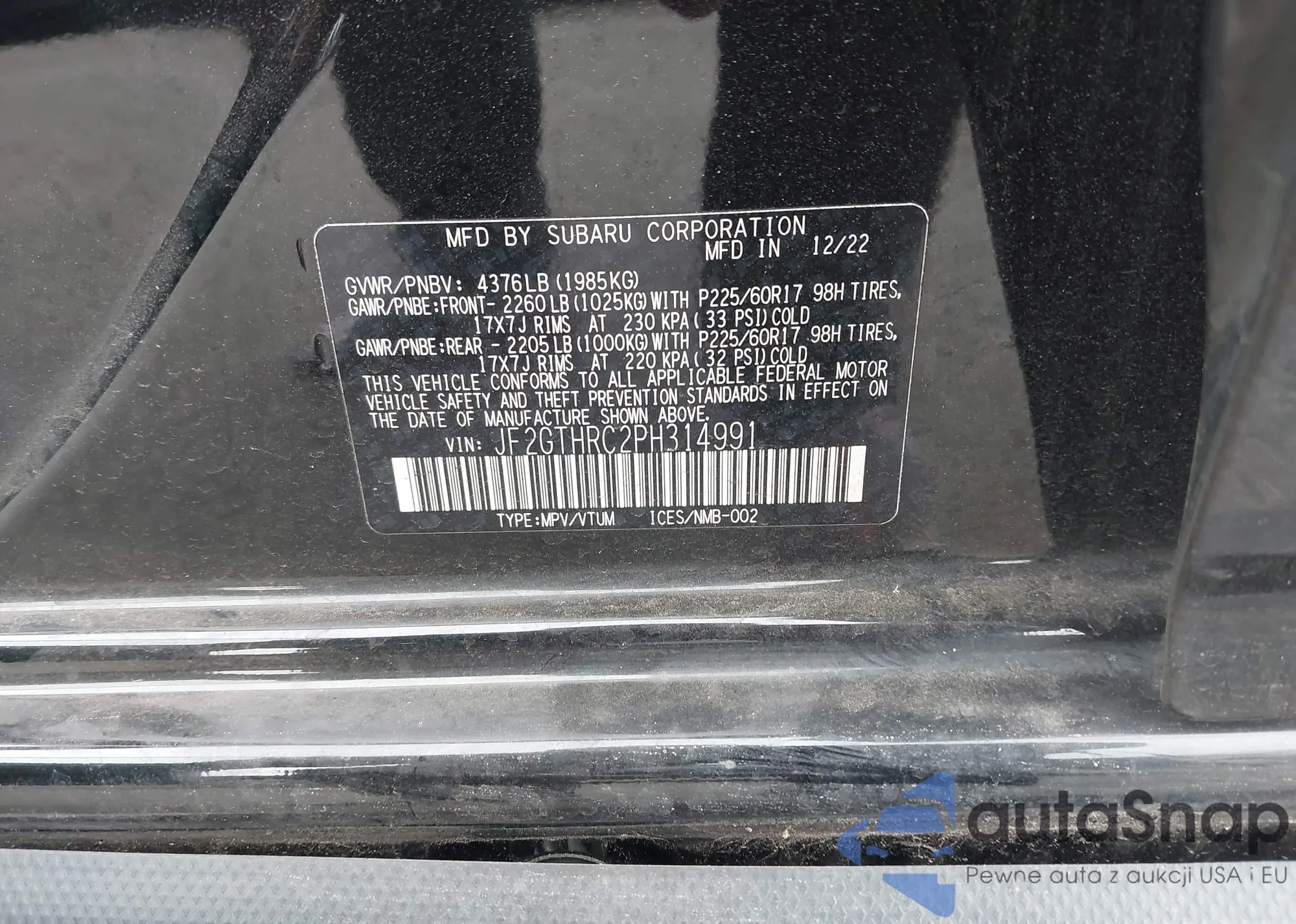 VIN: JF2GTHRC2PH314991