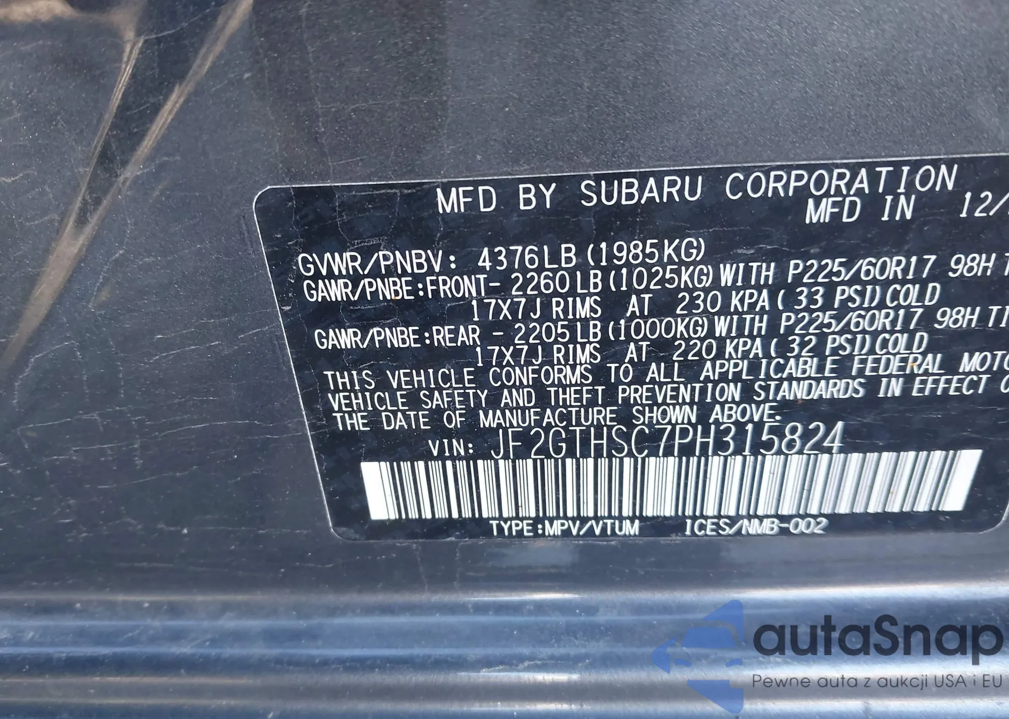 VIN: JF2GTHSC7PH315824