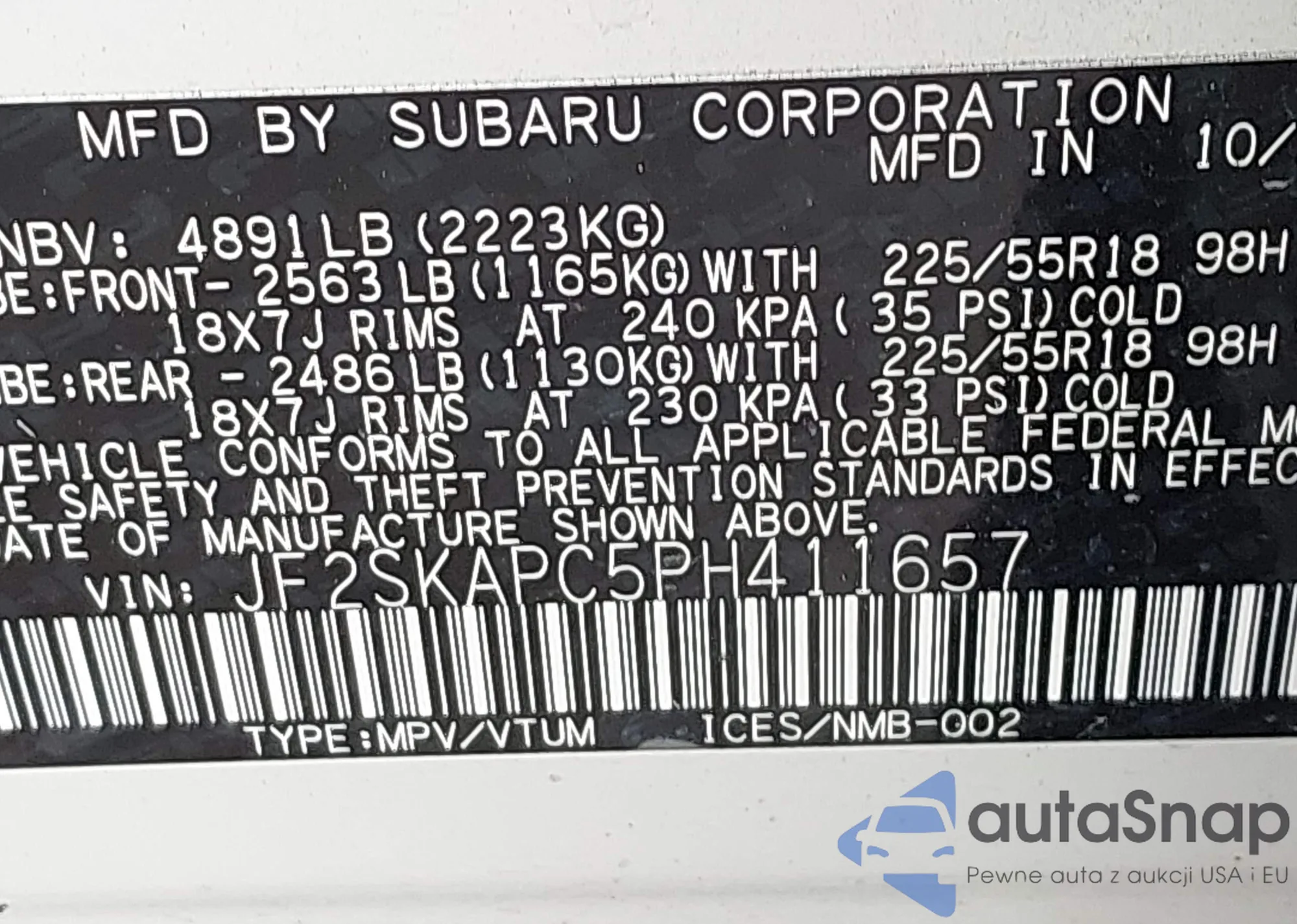 VIN: JF2SKAPC5PH411657