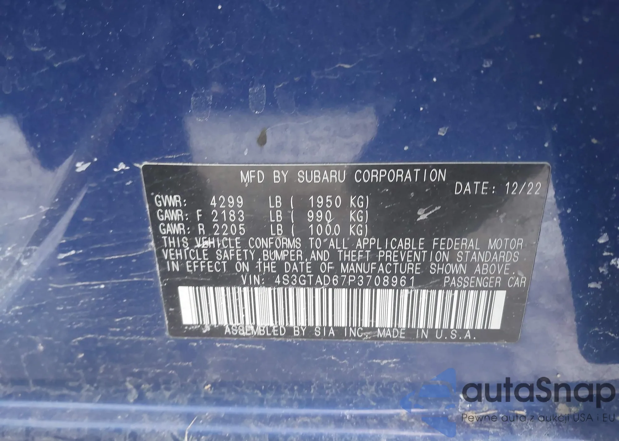 VIN: 4S3GTAD67P3708961