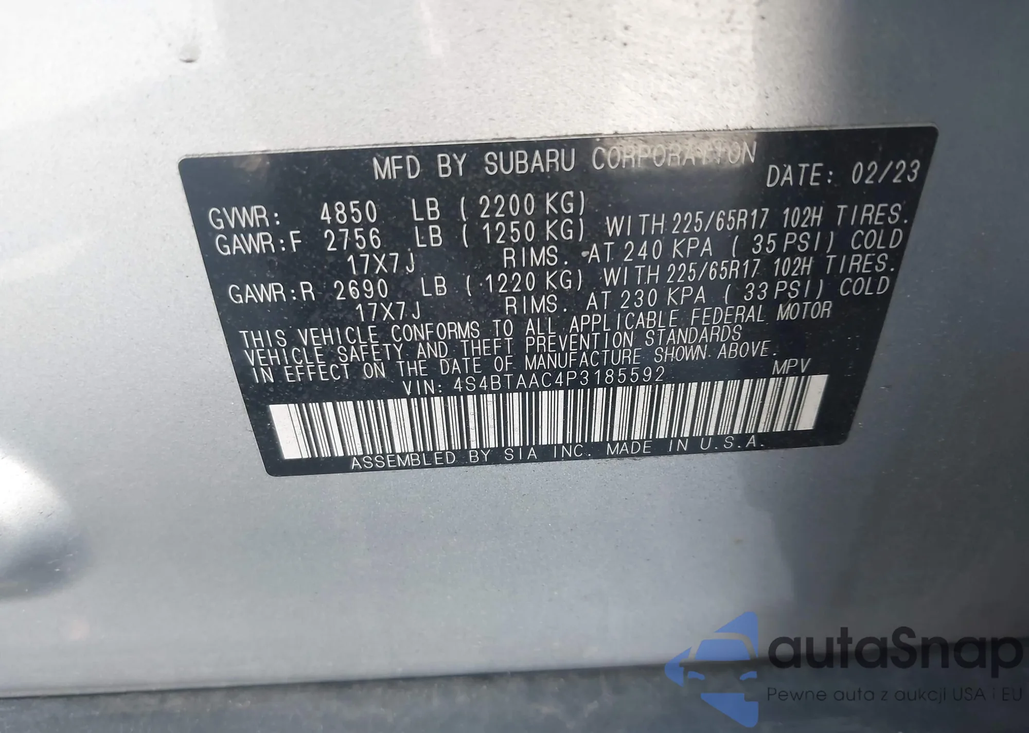 VIN: 4S4BTAAC4P3185592