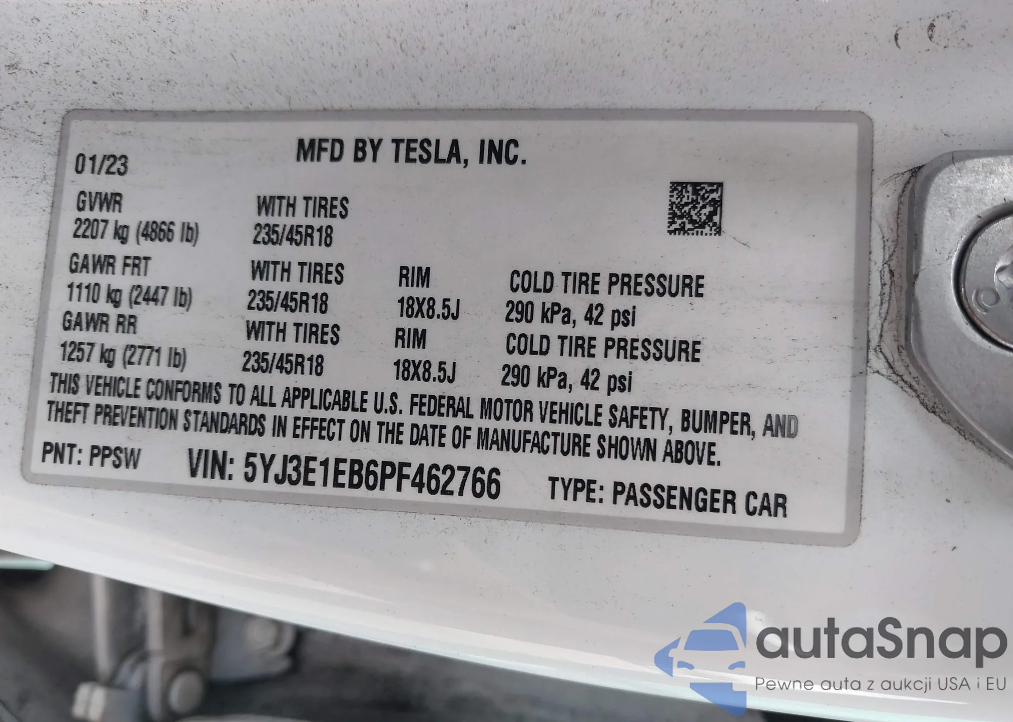 VIN: 5YJ3E1EB6PF462766