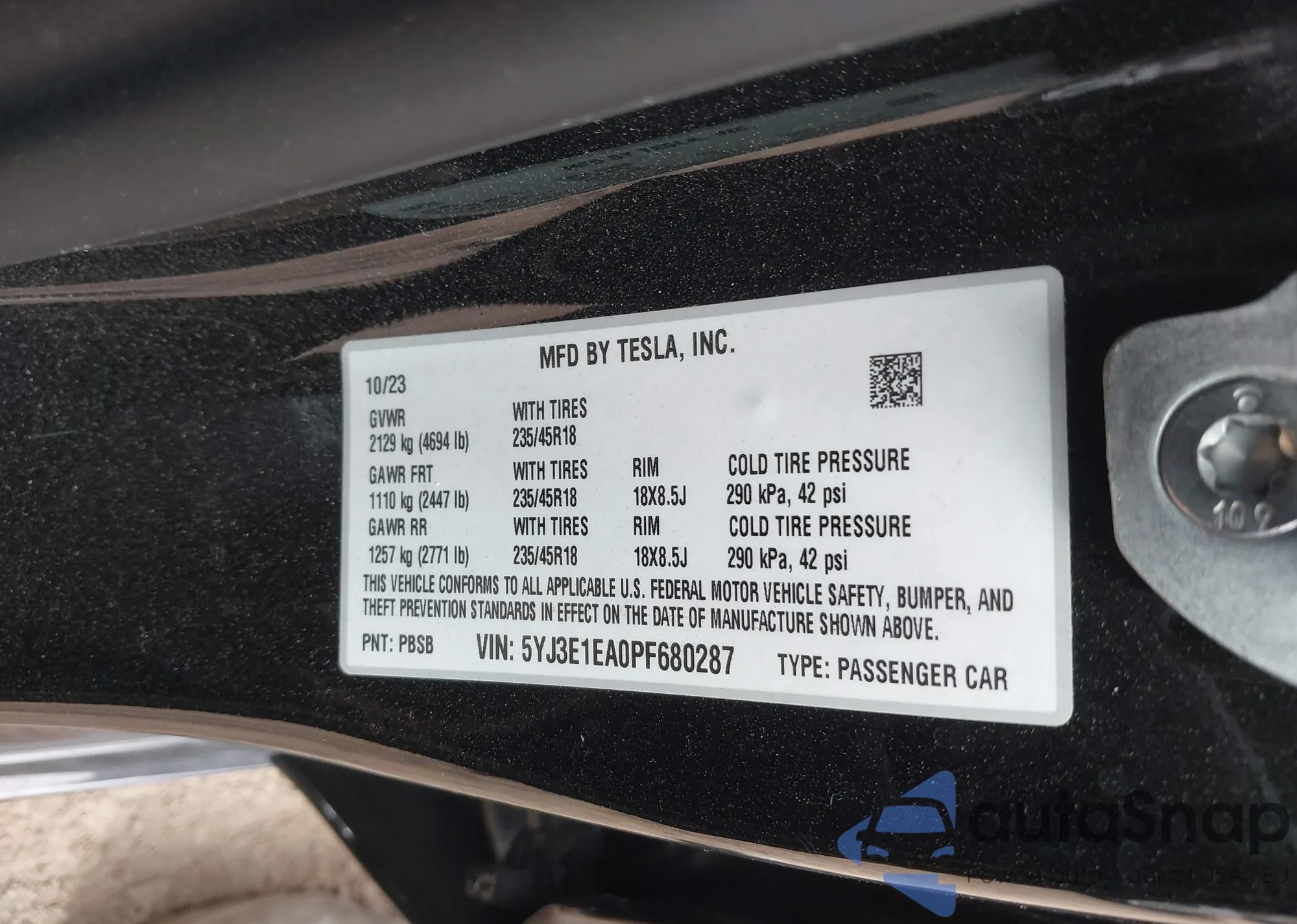 VIN: 5YJ3E1EA0PF680287