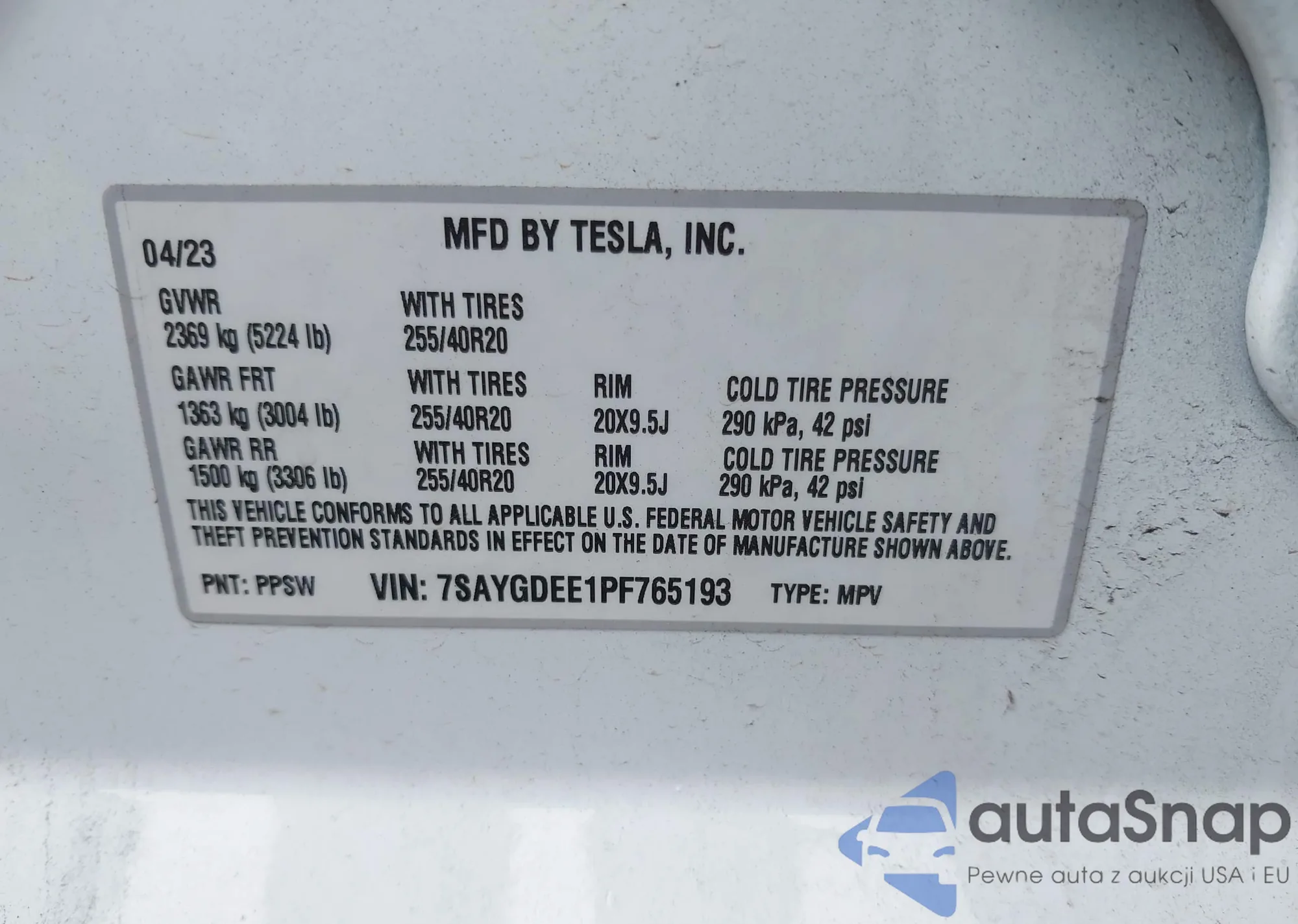 VIN: 7SAYGDEE1PF765193