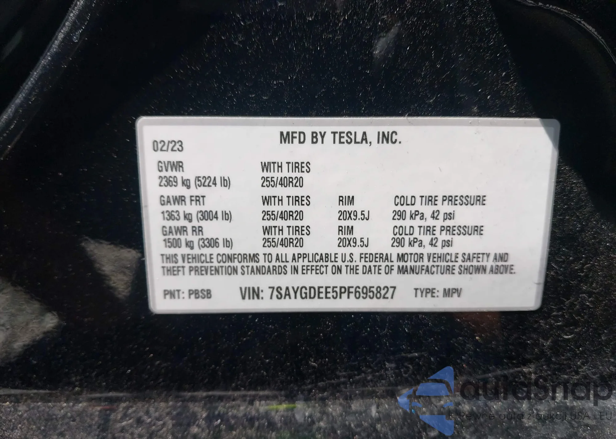 VIN: 7SAYGDEE5PF695827