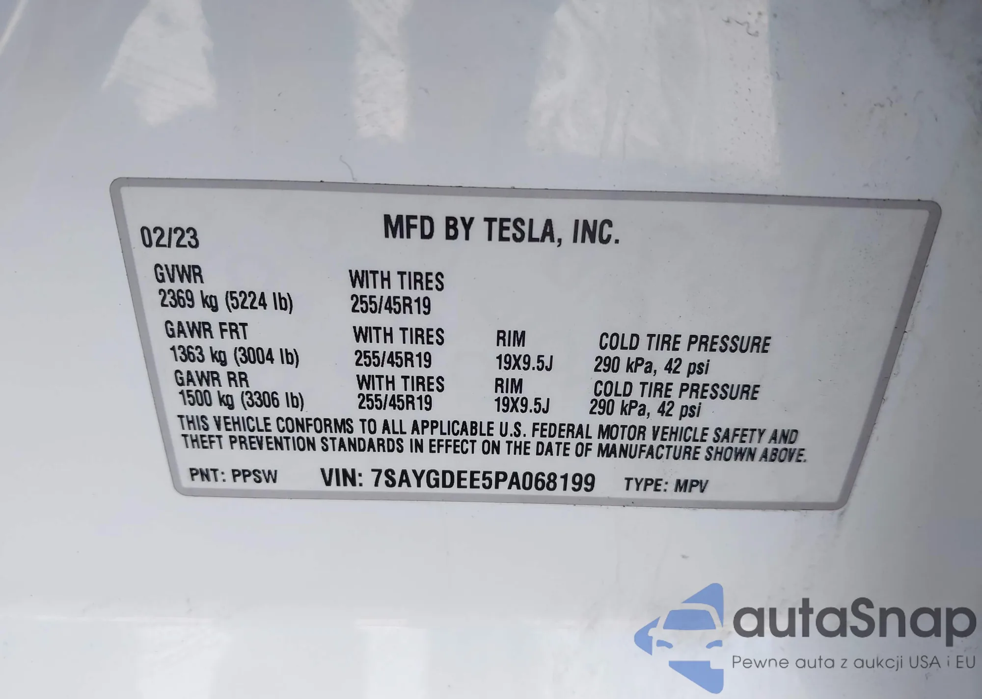 Автомобиль Tesla Model Y 2023 (VIN 7SAYGDEE5PA068199) ранее не участвовал в торгах. Документы чистые, пробег соответствует или ниже среднего по рынку. Продаётся страховой компанией — рекомендуем покупку. Доставка в порт займет около 6–8 недель.