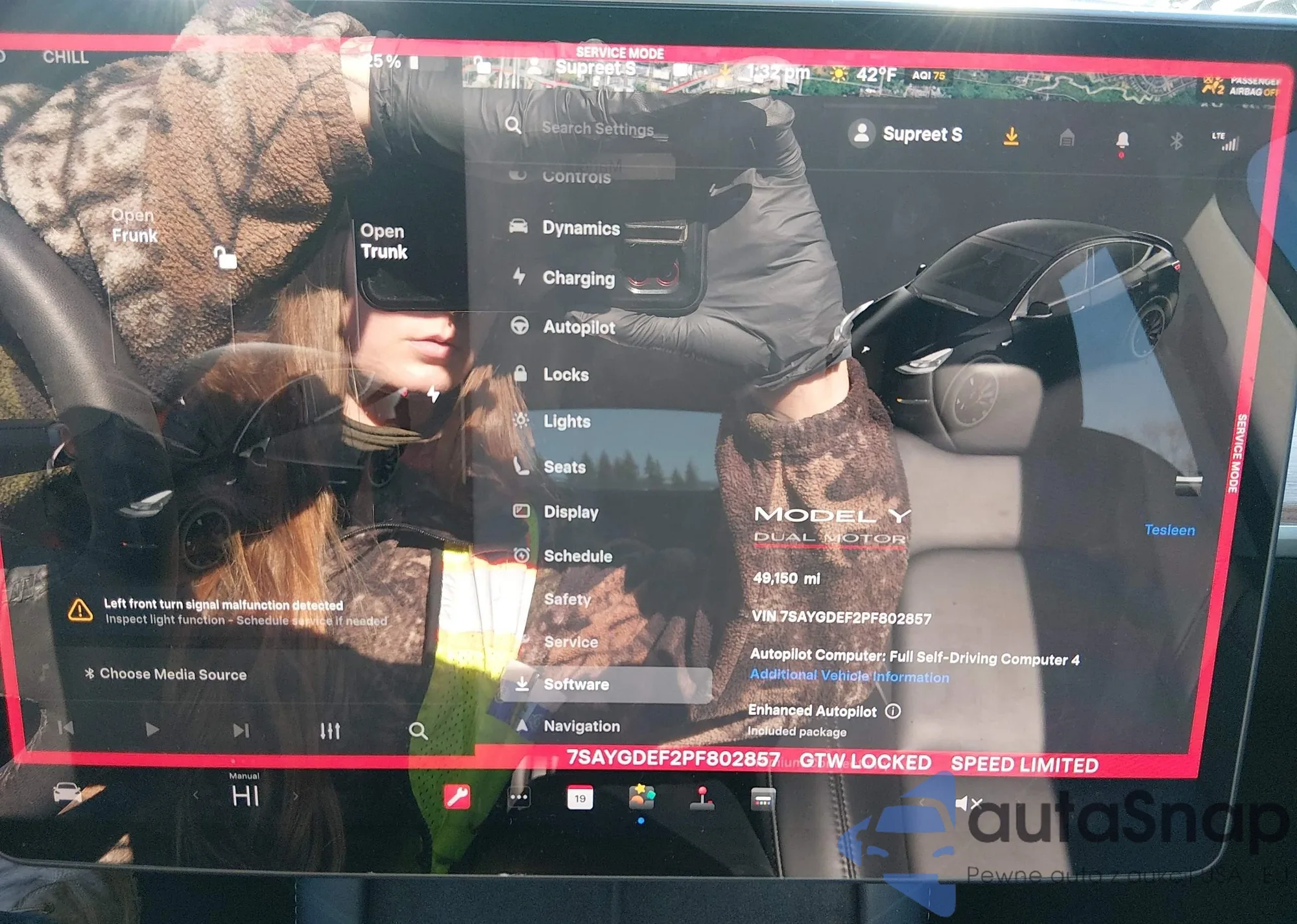 Автомобиль Tesla Model Y 2023 (VIN 7SAYGDEF2PF802857) имеет документы, препятствующие регистрации. Могут возникнуть сложности при экспорте и регистрации. Обратитесь к экспертам AutaSnap для поиска альтернатив.