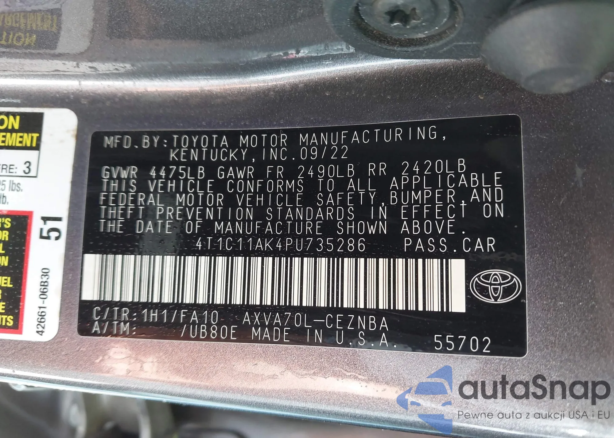 VIN: 4T1C11AK4PU735286
