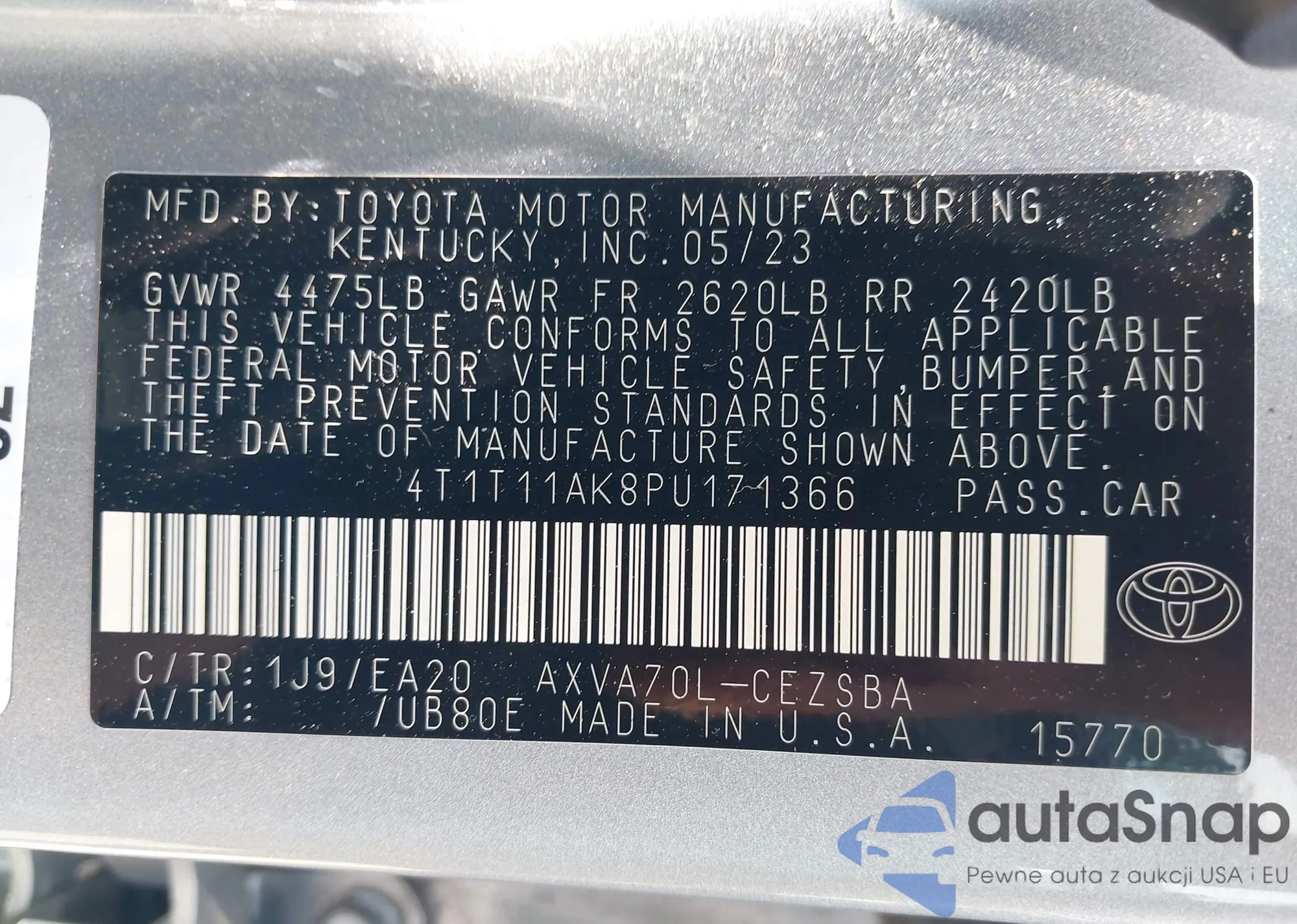 VIN: 4T1T11AK8PU171366