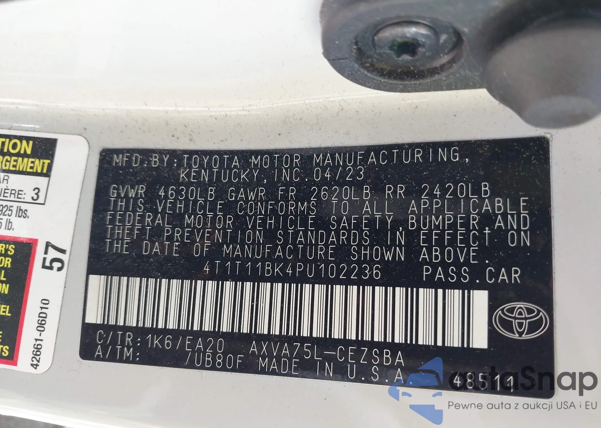 VIN: 4T1T11BK4PU102236