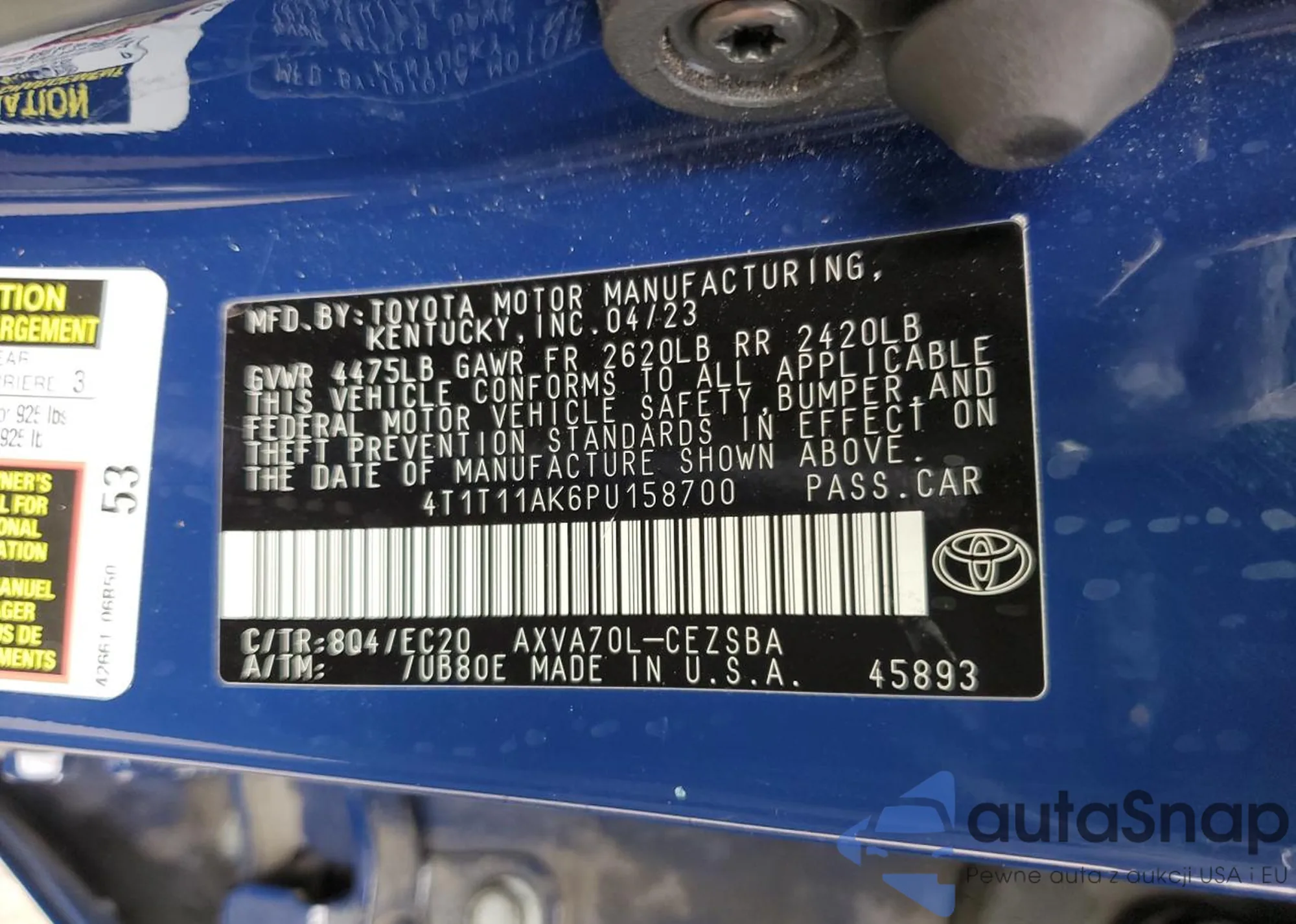VIN: 4T1T11AK6PU158700