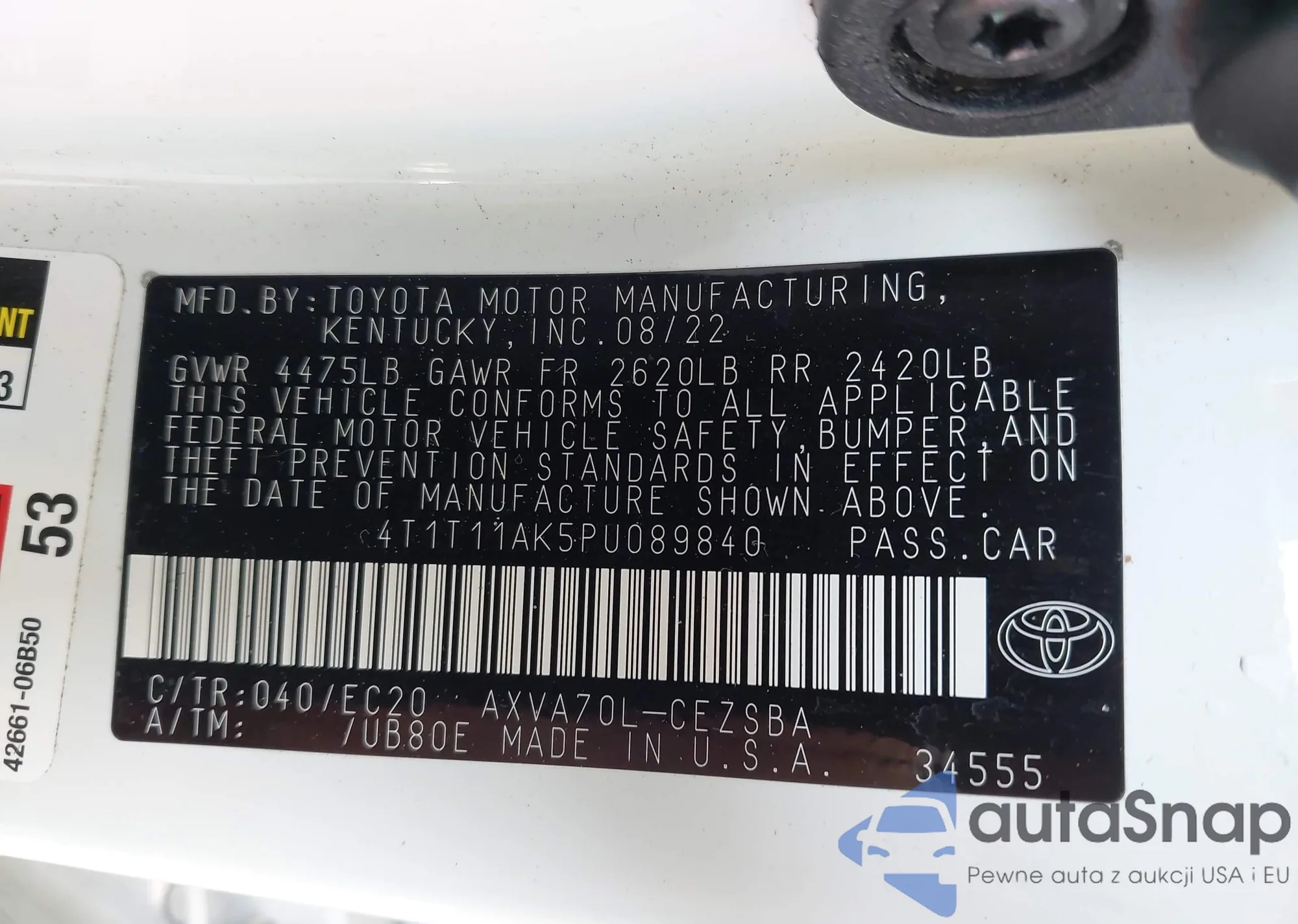 VIN: 4T1T11AK5PU089840
